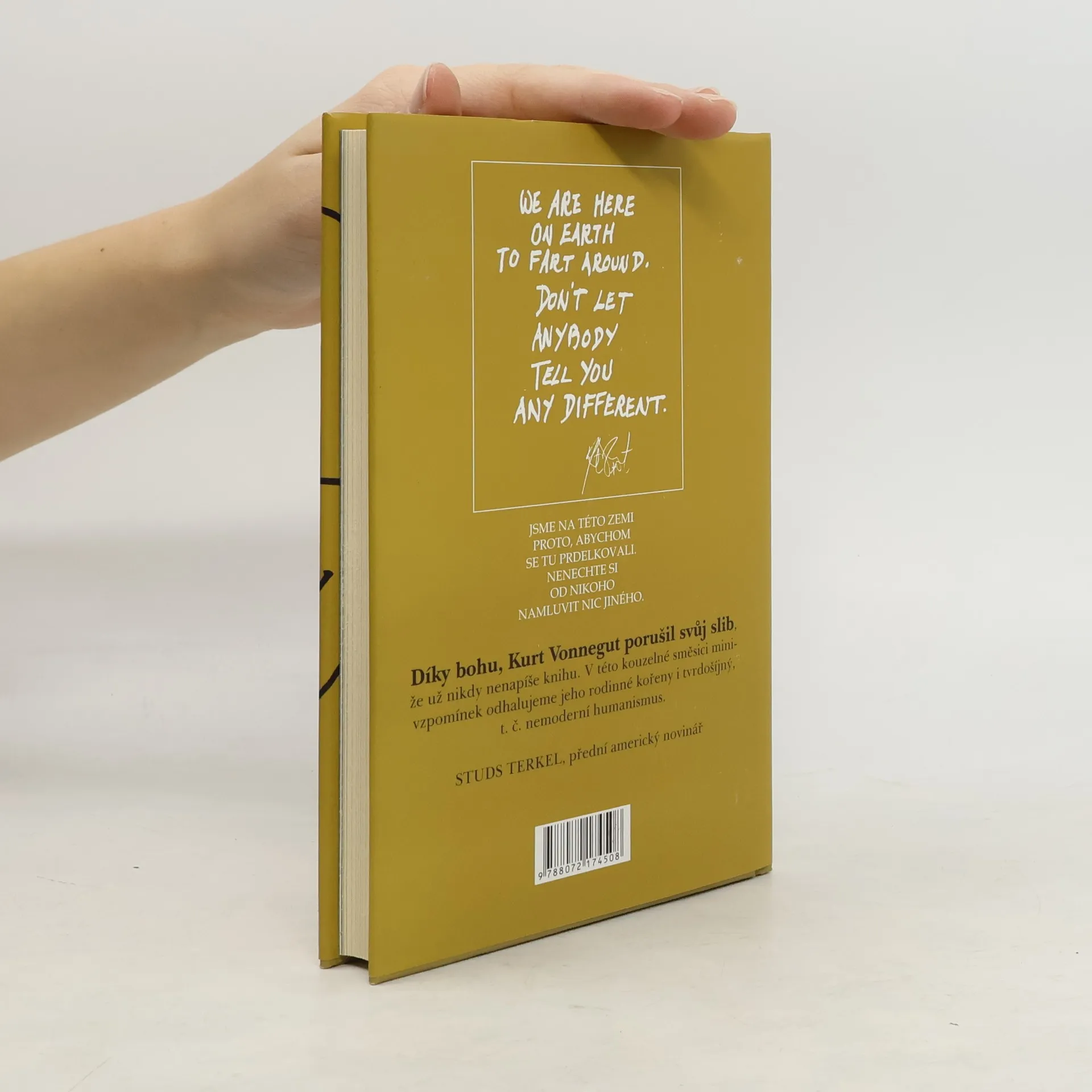 Nová kniha Kurta Vonneguta se od těch dosavadních v mnohém liší (nejde o beletrii, ale o krátké vzpomínky a úvahy), ale Vonnegut se svým ostrým zrakem a stručnými, přesnými komentáři je stále týž. Někdy zní sarkasticky, někdy nostalgicky, někdy téměř rezignovaně. Titul knihy naznačuje, že mu činí potíže se identifikovat se svou rodnou zemí. Vonnegut se obrací ke svým americkým spoluobčanům, ale kniha je přesto zajímavá i pro nás; ukazuje, jak vidí svět jeden z nejcitlivějších amerických intelektuálů, autor takových kultovních trháků jako Jatka č. 5, Kolíbka nebo Groteska. Jestli chcete vědět, kdo dnes podle Vonneguta ještě reprezentuje Ameriku, kterou měl kdysi rád, přečtěte si jeho knihu. Fanoušci George W. Bushe z ní mít radost nebudou ...