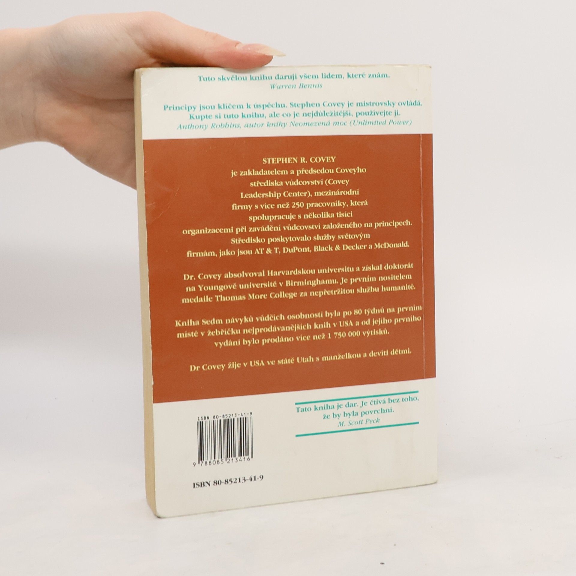 Dvěma slovy: trvalý bestseller - tato kniha byla přeložena do zhruba třiceti jazyků a prodalo se jí přes patnáct miliónů výtisků. Covey shrnuje a do sedmi návyků strukturalizuje moudrost dvou tisíc let. Inspiruje se křesťanstvím, judaismem, taoismem, budhismem, managementem a leadershipem. Nepíše ani tak o praktikách a technikách, jako o přirozených přírodních principech. Ty, na rozdíl od přírodních zákonů, respektovat můžeme, ale nemusíme. V případě, že se rozhodneme tak neučinit, nedivme se, jaké že to plody našeho života sklízíme. Kniha je určena pro všechny, kteří chtějí zlepšit kvalitu svého života. Pro leadery je tato kniha zcela zásadní.... celý text