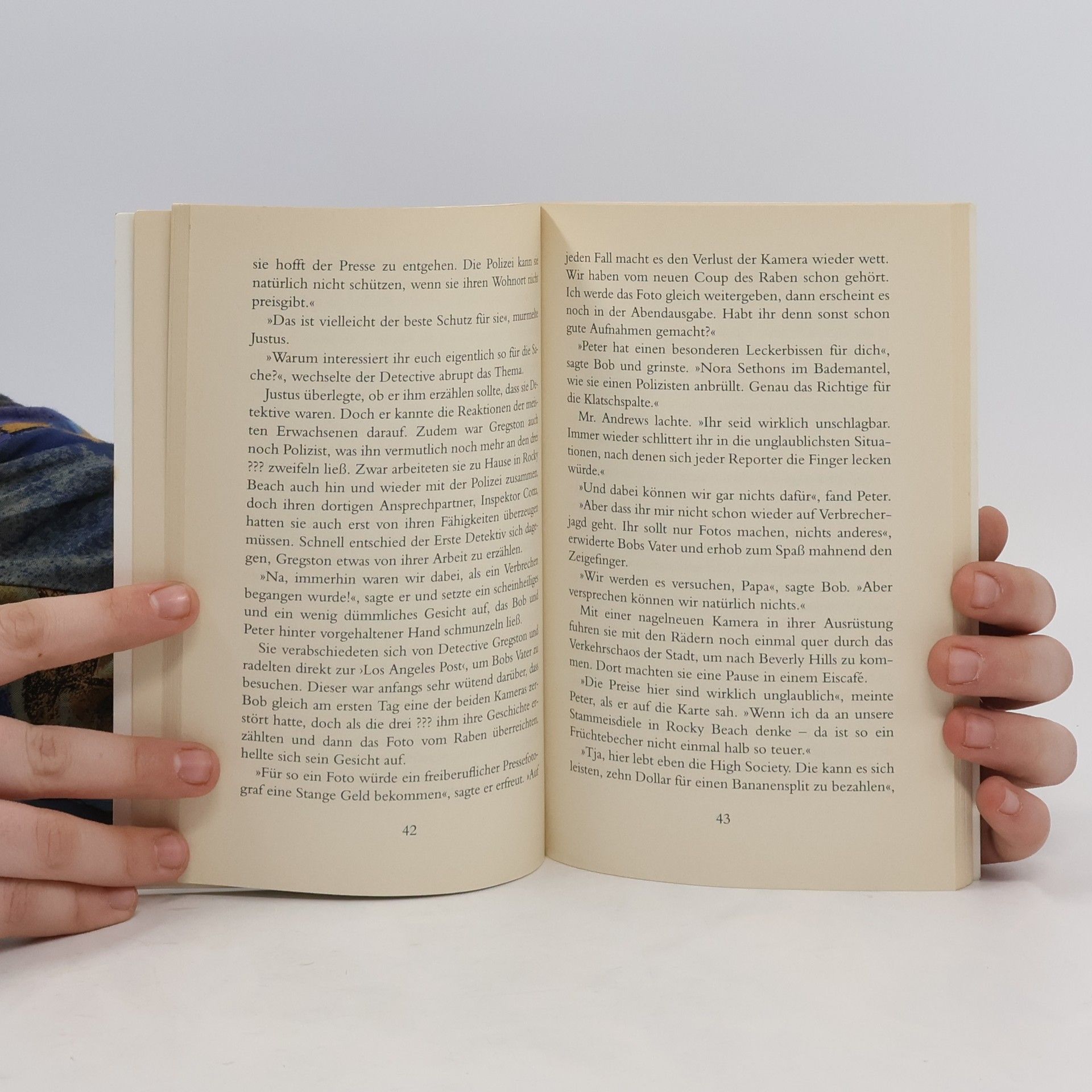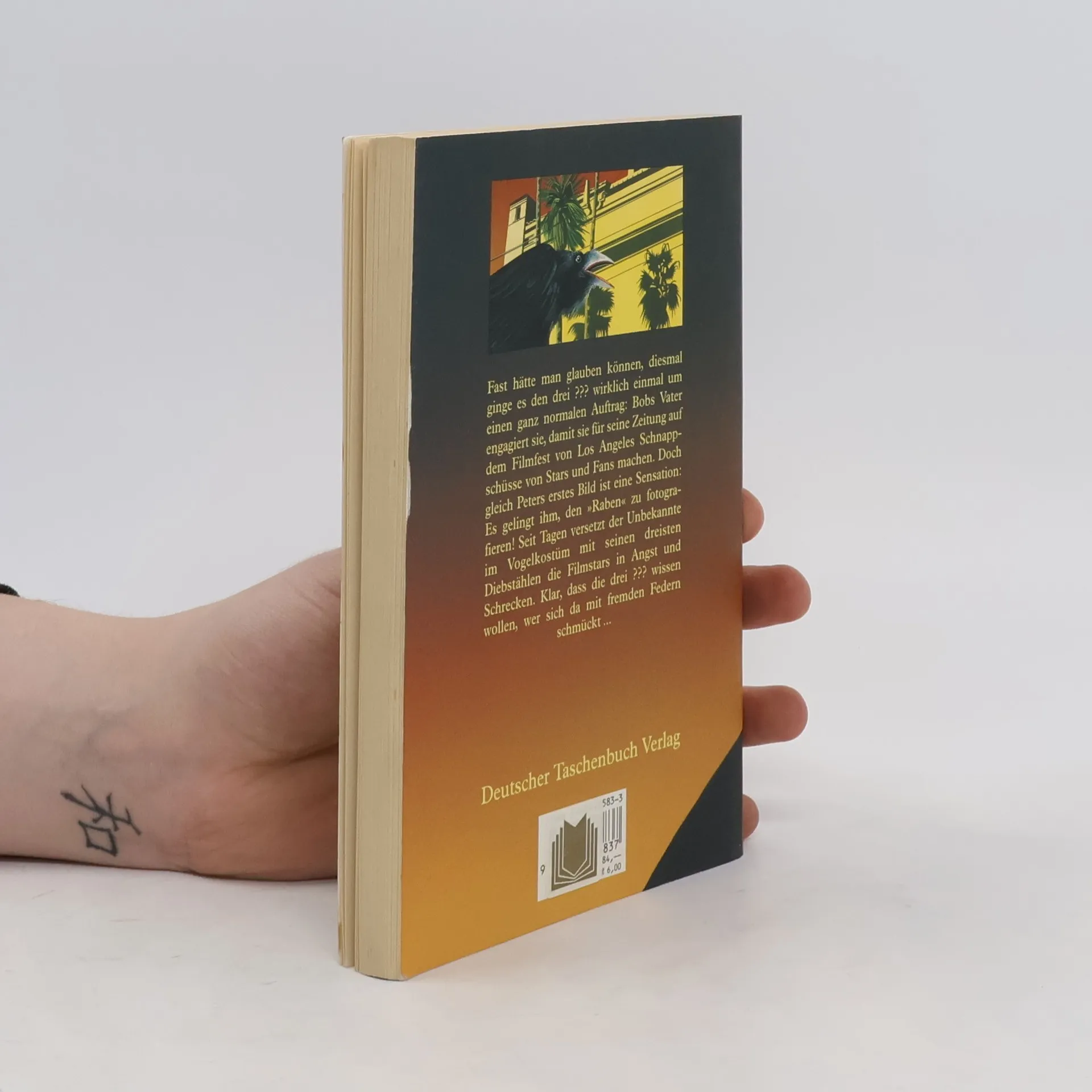 Fast hätte man glauben könne, diesmal ginge es den drei ??? wirklich einmal um einen ganz normalen Auftrag: Bobs Vater engagiert sie, damit sie für seine Zeitung auf dem Filmfest von Los Angeles Schnappschüsse von Stars und Fans machen. Doch gleich Peters erstes Bild ist eine Sensation: Es gelingt ihm, den "Raben" zu fotografieren! Seit Tagen versetzt der Unbekannte im Vogelkostüm mit seinen dreisten Diebstählen die Filmstars in Angst und Schrecken. Klar, dass die drei ??? wissen wollen, wer sich da mit fremden Federn schmückt...