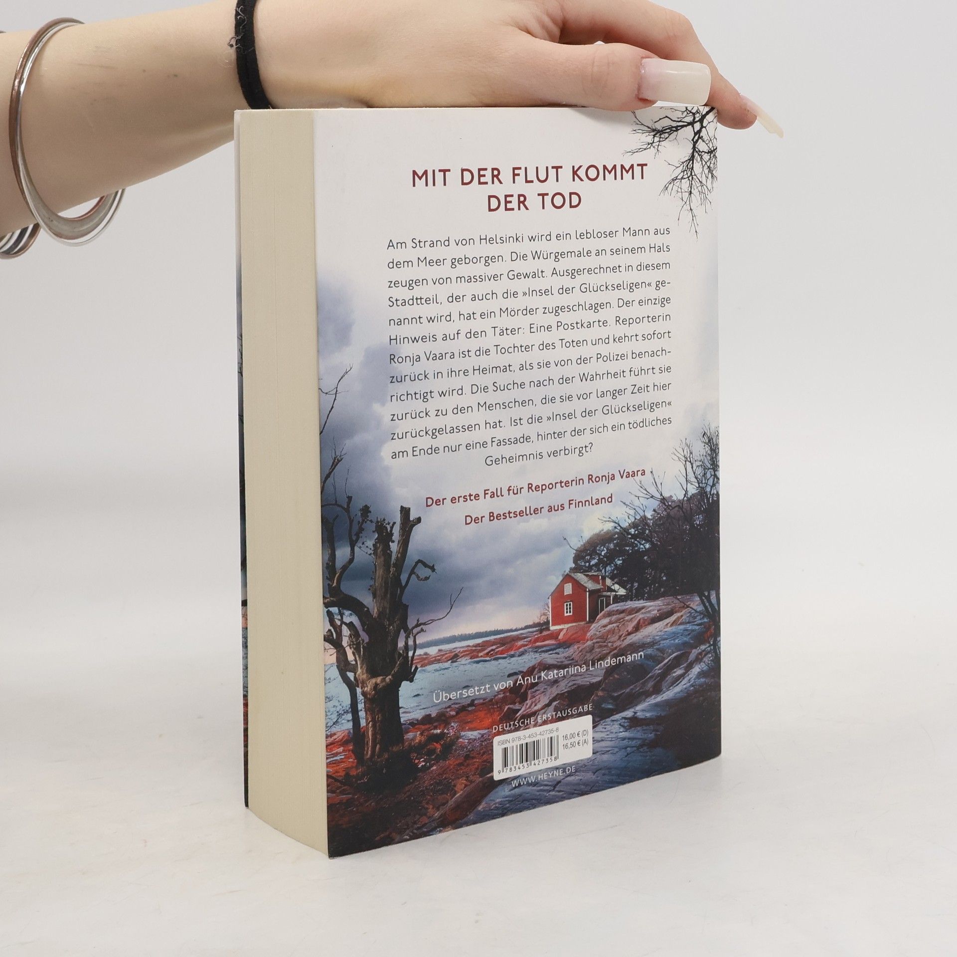 Helsinkis schönste Insel zeigt ihr dunkelstes Gesicht: Der erste Fall für Reporterin Ronja Vaara An einem grauen Oktobertag wird am Strand der Insel Lauttasaari, im Stadtgebiet von Helsinki, ein lebloser Mann am Strand gefunden. Wenig später erhält Journalistin Ronja Vaara in London einen Anruf: Ihr Vater ist der Tote am Strand, und er wurde allem Anschein nach ermordet. Sofort fliegt sie in ihre Heimat, doch die Ermittlungen der Polizei bleiben zunächst ergebnislos, und Ronjas eigene Nachforschungen werfen nur weitere Fragen auf: Warum erhielt ihr Vater über dreißig Jahre lang jedes Jahr eine Postkarte mit einem Bild von genau dem Strand, an dem man ihn gefunden hat? Was wissen die anderen Bewohner der Insel, die auch „die Insel der Glückseligen“ genannt wird? Und warum wird Ronja das Gefühl nicht los, dass sie beobachtet wird?