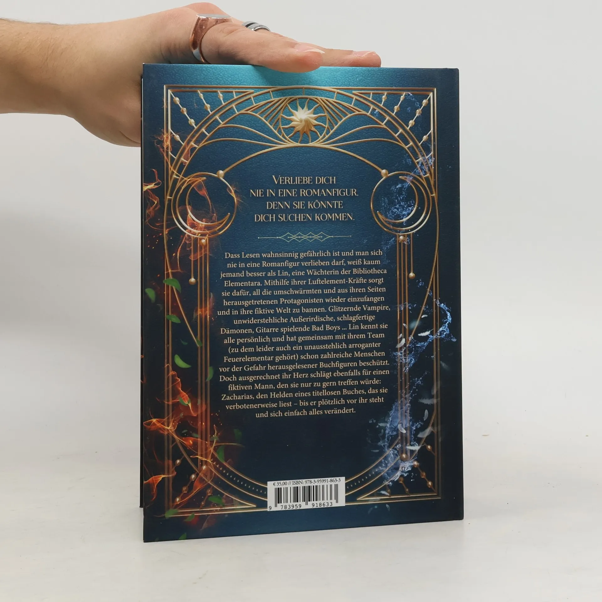 *Verliebe dich nie in eine Romanfigur, denn sie könnte dich suchen kommen.* Dass Lesen wahnsinnig gefährlich ist und man sich nie in eine Romanfigur verlieben darf, weiß kaum jemand besser als Lin, eine Wächterin der Bibliotheca Elementara. Mithilfe ihrer Luftelement-Kräfte sorgt sie dafür, all die umschwärmten und aus ihren Seiten herausgetretenen Protagonisten wieder einzufangen und in ihre fiktive Welt zu bannen. Glitzernde Vampire, unwiderstehliche Außerirdische, schlagfertige Dämonen, Gitarre spielende Bad Boys ... Lin kennt sie alle persönlich und hat gemeinsam mit ihrem Team (zu dem leider auch ein unausstehlich arroganter Feuerelementar gehört) schon zahlreiche Menschen vor der Gefahr herausgelesener Buchfiguren beschützt. Doch ausgerechnet ihr Herz schlägt ebenfalls für einen fiktiven Mann, den sie nur zu gern treffen würde: Zacharias, den Helden eines titellosen Buches, das sie verbotenerweise liest – bis er plötzlich vor ihr steht und sich einfach alles verändert. Sammelband beinhaltet die Einzelbände: Die Magie zwischen den Zeilen Die Welt hinter den Buchstaben Das Geheimnis unter der Tinte