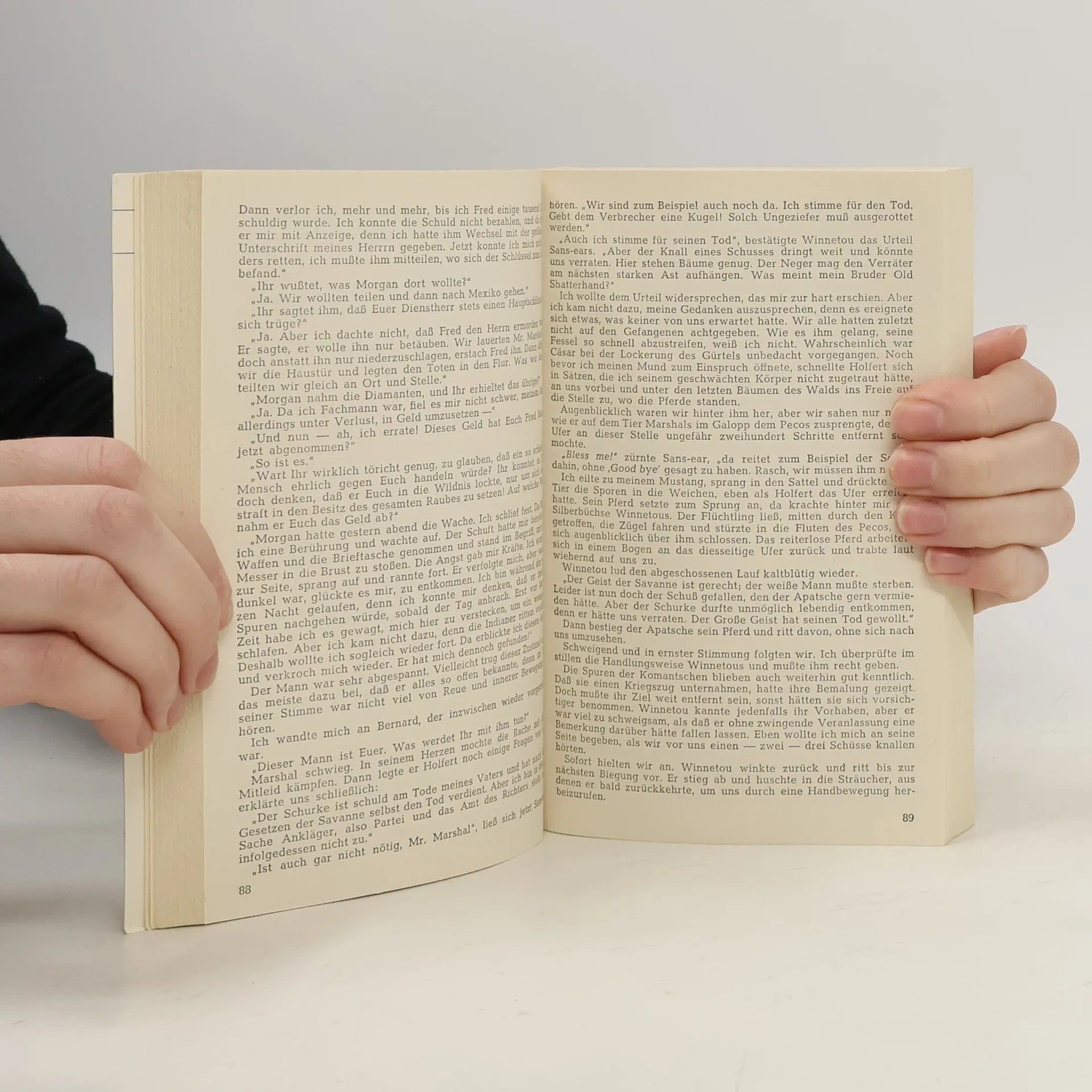 Nach vielen spannenden Erlebnissen unter den Komantschen und in Kalifornien setzt die Erzählung vom Leben und Sterben des edlen Häuptlings dem ganzen indianischen Volk ein unvergängliches Denkmal. Der Bericht über das Testament des Apatschen beschließt das tragische Geschehen. Die vorliegende Erzählung spielt in der ersten Hälfte der 70er-Jahre des 19. Jahrhunders.