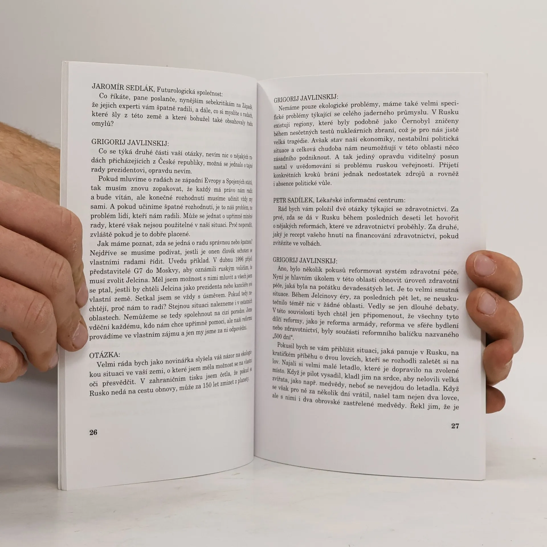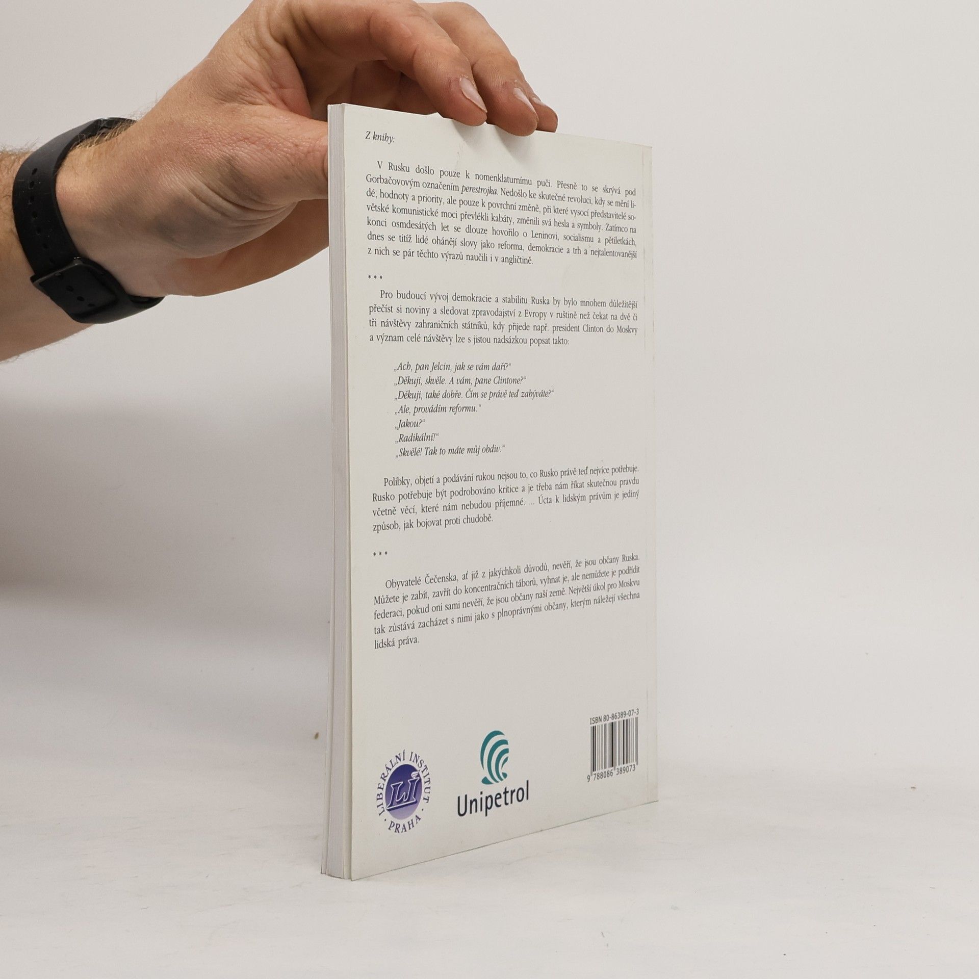 Kniha obsahuje přednášku G.J., ve které najdeme kromě názoru na úlohu soukromého vlastnictví při ekonomické transformaci, také jeho pohled na válku v Čečensku schovat popis