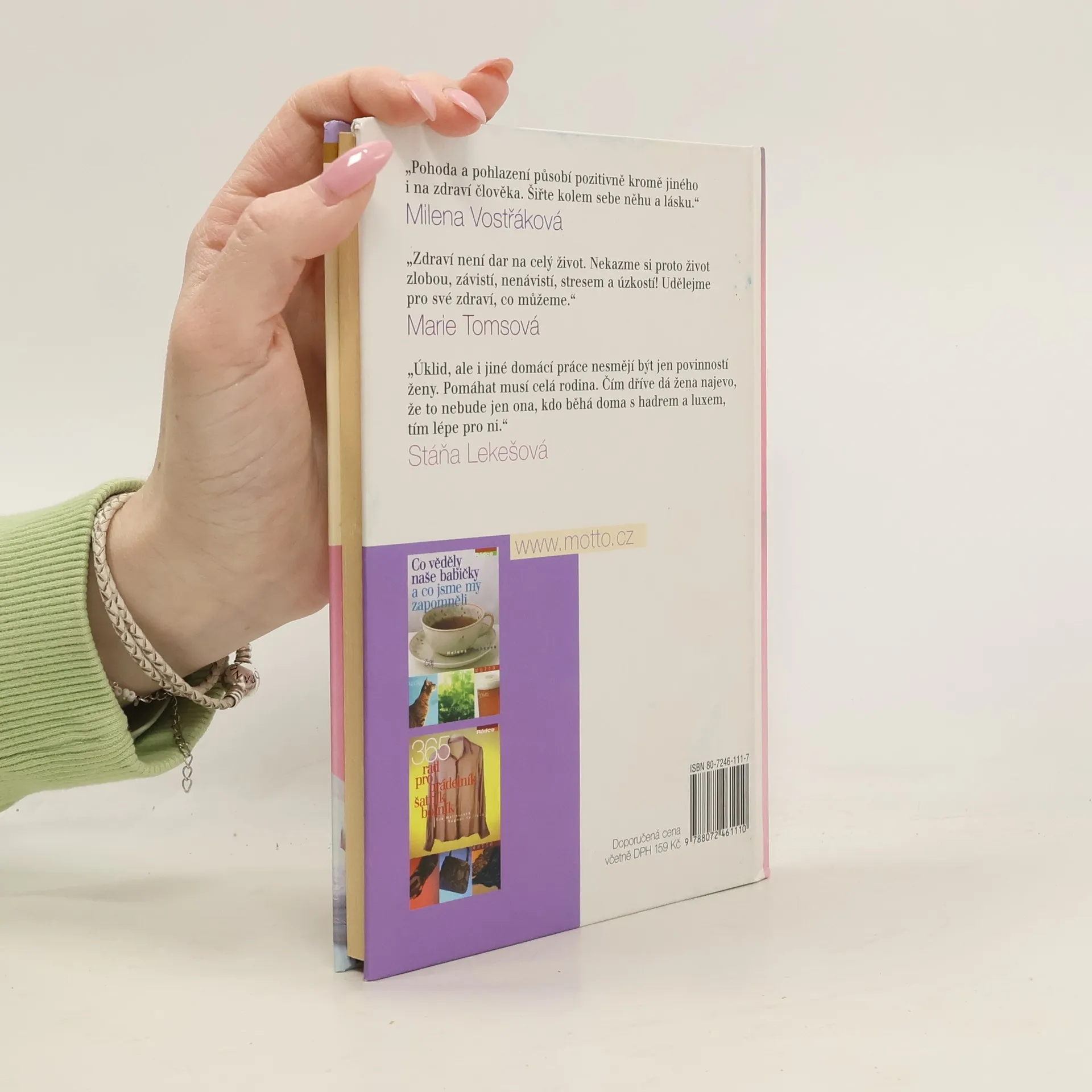Trojice autorek - Stanislava Lekešová, Marie Tomsová, Milena Vostřáková podávají všeobecné návody pro ženy ve všech oborech - společnost, rodina, jídlo, úklid, domácí společníci, zdraví, péče o zevnějšek, svátky, dovolená ......