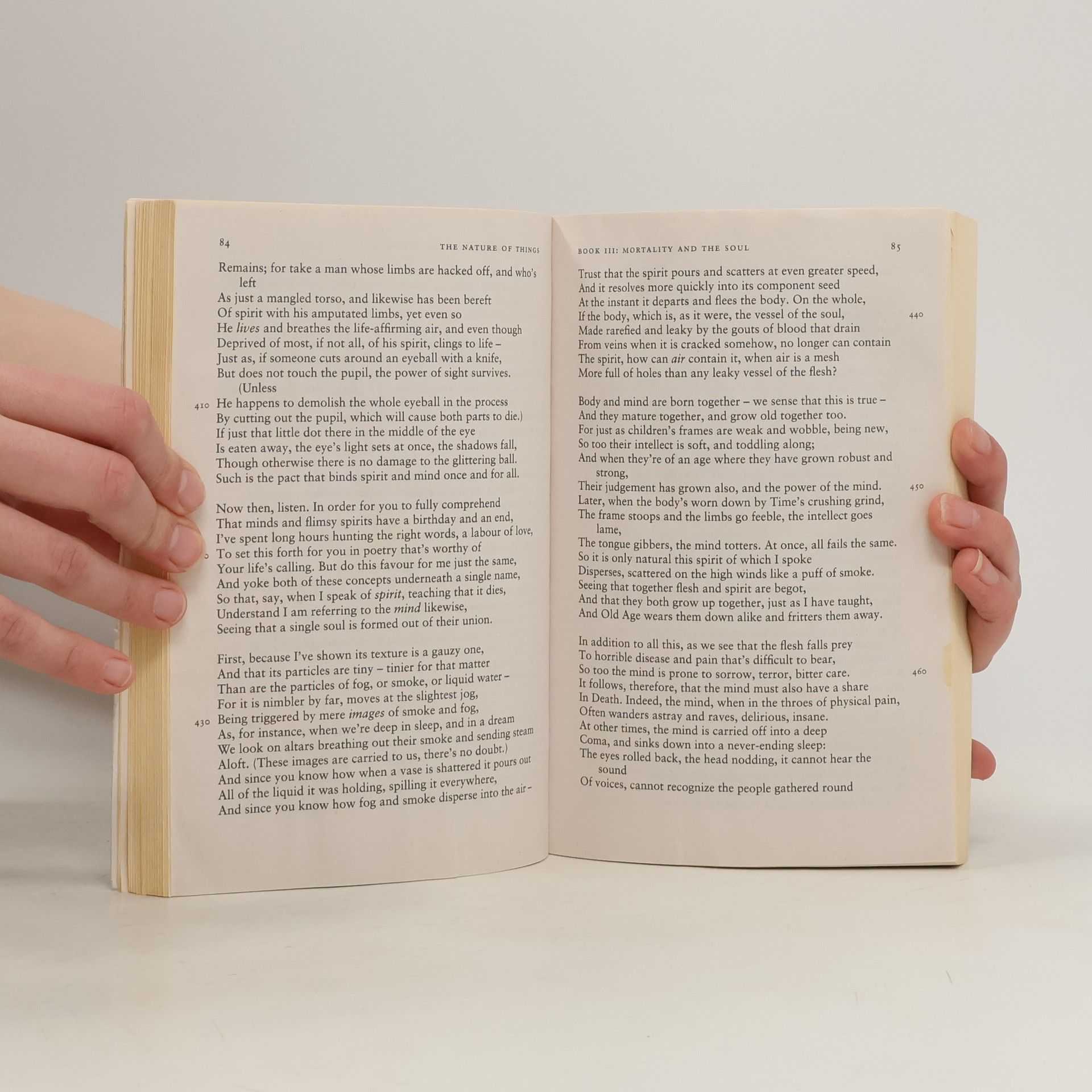 Lucretius' poem On the Nature of Things combines a scientific and philosophical treatise with some of the greatest poetry ever written. With intense moral fervour he demonstrates to humanity that in death there is nothing to fear since the soul is mortal, and the world and everything in it is governed by the mechanical laws of nature and not by gods; and that by believing this men can live in peace of mind and happiness. He bases this on the atomic theory expounded by the Greek philosopher Epicurus, and continues with an examination of sensation, sex, cosmology, meteorology, and geology, all of these subjects made more attractive by the poetry with which he illustrates them.