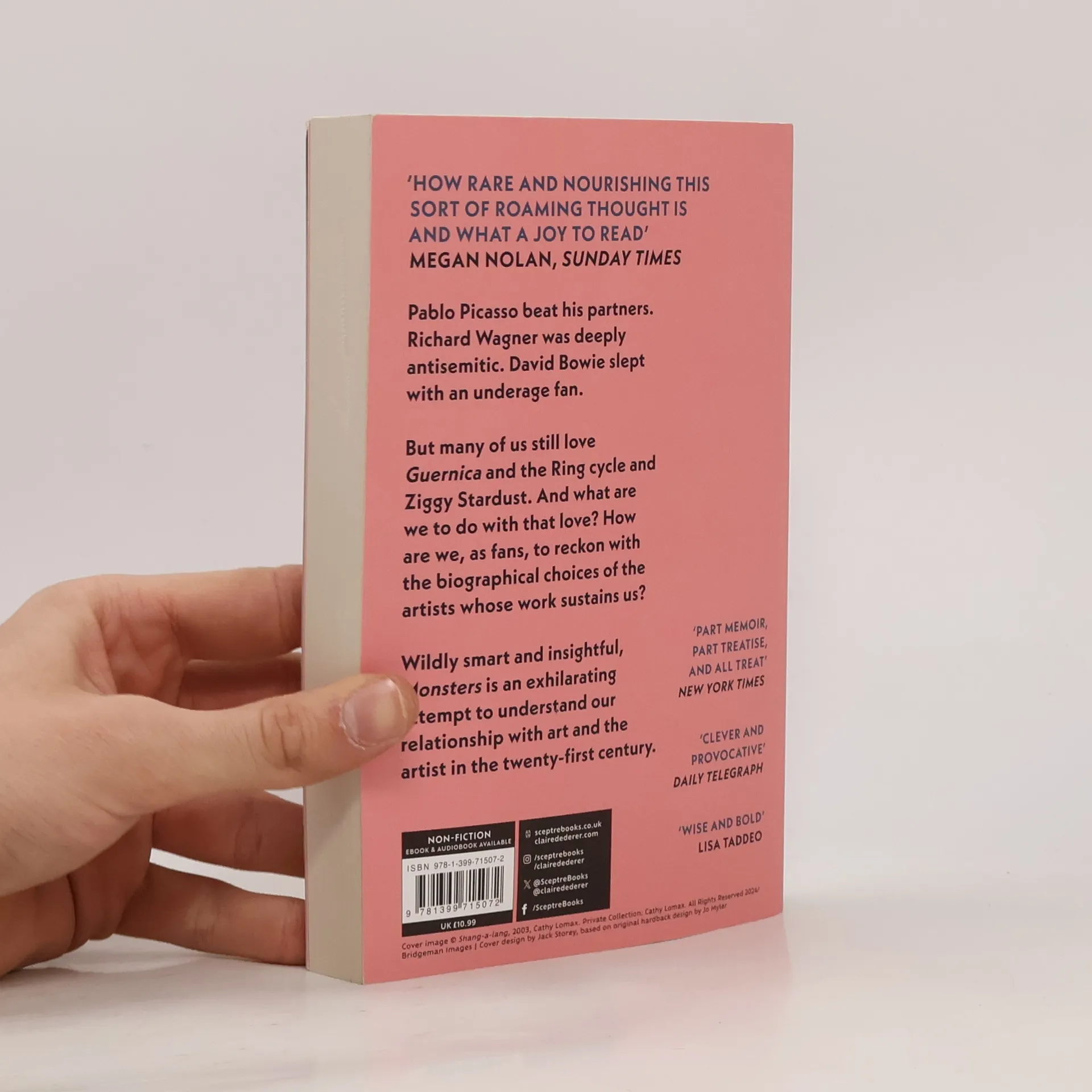 'How rare and nourishing this sort of roaming thought is and what a joy to read' MEGAN NOLAN, Sunday Times 'An exhilarating, shape-shifting exploration of the perilous boundaries between art and life' JENNY OFFILL Pablo Picasso beat his partners. Richard Wagner was deeply antisemitic. David Bowie slept with an underage fan. But many of us still love Guernica and the Ring cycle and Ziggy Stardust. And what are we to do with that love? How are we, as fans, to reckon with the biographical choices of the artists whose work sustains us? Wildly smart and insightful, Monsters is an exhilarating attempt to understand our relationship with art and the artist in the twenty-first century. 'An incredible book, the best work of criticism I have read in a very long time' NICK HORNBY 'Part memoir, part treatise, and all treat' New York Times 'Clever and provocative' Daily Telegraph