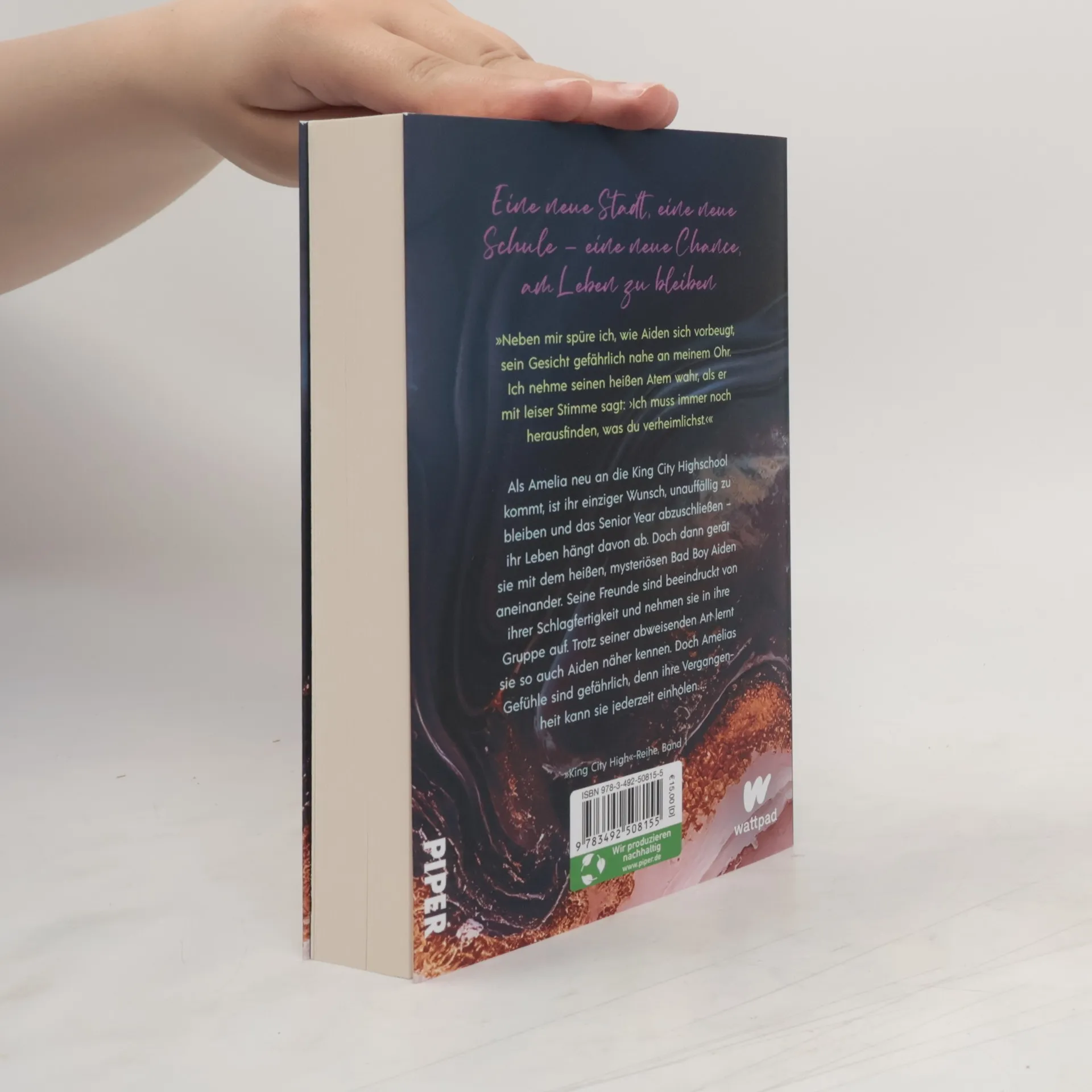Sie kann ihn nicht vergessen … doch ihre Gefühle bringen alle in Gefahr. Dramatische, rasante Young Adult-Romance für Fans von Leonie Lastella und Ayla Dade »Neben mir spüre ich, wie Aiden sich vorbeugt, sein Gesicht gefährlich nahe an meinem Ohr. Ich nehme seinen heißen Atem wahr, als er mit leiser Stimme sagt: ›Ich muss immer noch herausfinden, was du verheimlichst.‹« Als Amelia neu an die King City Highschool kommt, ist ihr einziger Wunsch, unauffällig zu bleiben und das Senior Year abzuschließen – ihr Leben hängt davon ab. Doch dann stößt sie mit dem heißen, mysteriösen Bad Boy Aiden zusammen und gerät mit ihm aneinander. Seine Freunde sind beeindruckt von ihrer Schlagfertigkeit und nehmen sie in ihre Gruppe auf. Trotz seiner abweisenden Art lernt Amelia so auch Aiden näher kennen und ehe sie sich versieht, verliebt sie sich in den verschlossenen Jungen mit weichem Kern und düsterer Vergangenheit. Doch Amelias Gefühle sind gefährlich, denn ihre Vergangenheit kann sie jederzeit einholen …