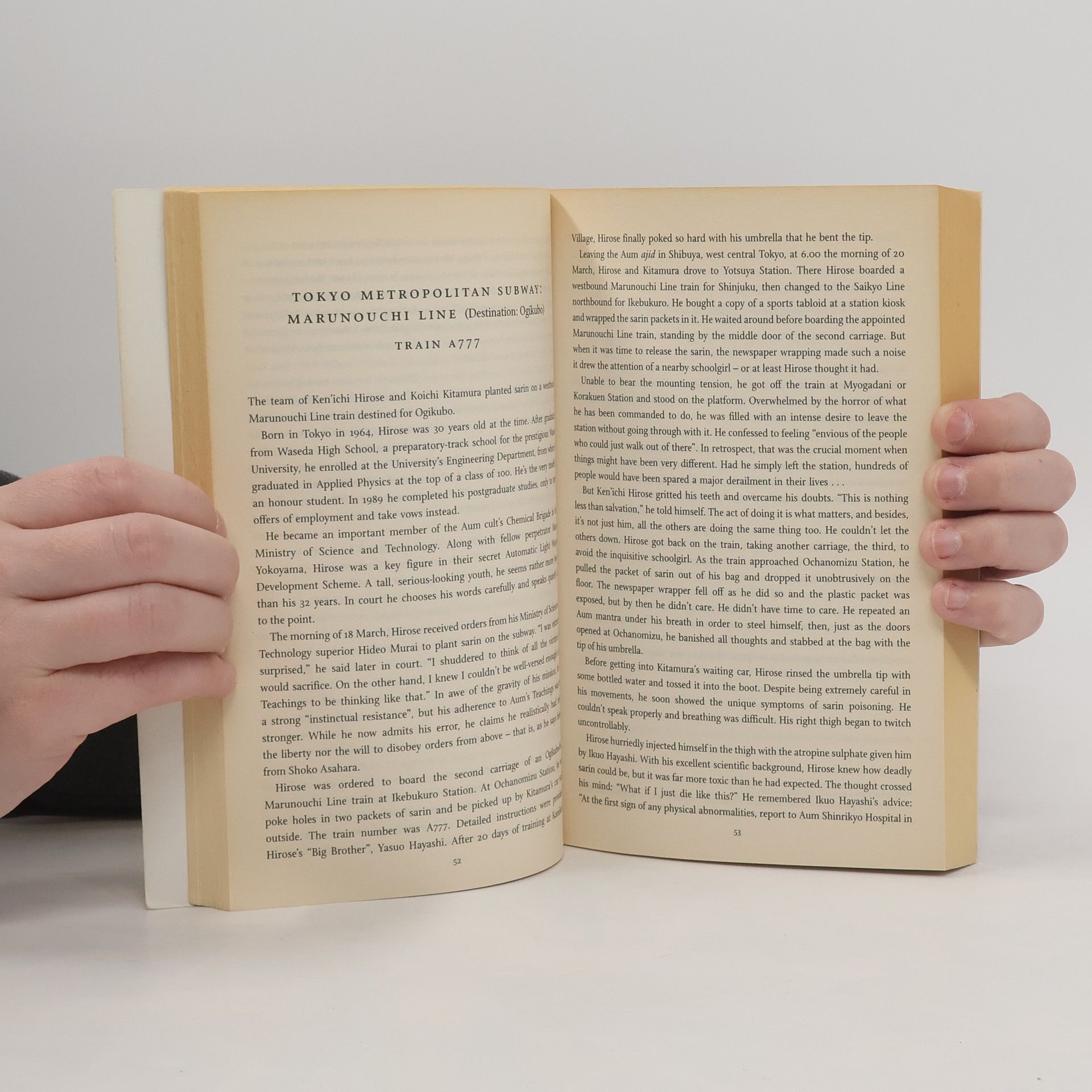 Un document necessari i commovedor de l’atac terrorista que va sacsejar Tokio el 1995. Una obra de literatura periodística que recull els testimonis de les víctimes de l’atac amb gas sarín al metro de Tòquio l’any 1995, així com la visió dels botxins, membres de la secta Aum Shinrikyo, i que analitza amb molta precisió la psicologia nipona i busca el perquè d’uns atemptats tan violents i cruels.