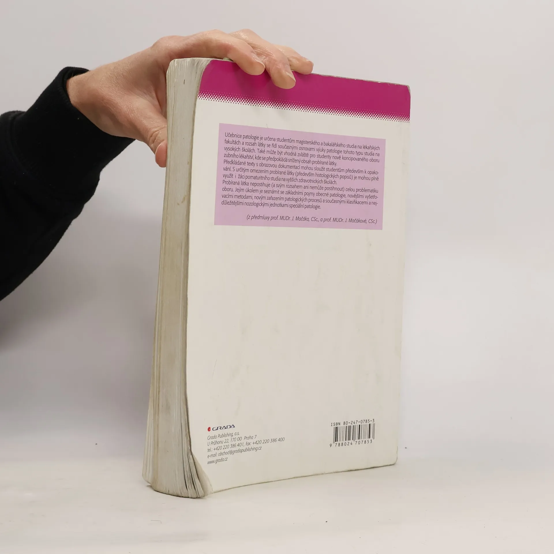 Učebnice je určena pro studenty mgr. a bc. studia na lékařských fakultách, vhodná je i pro studenty oboru zubního lékařství. Seznamuje se základními pojmy obecné patologie, novějšími vyšetřovacími metodami v patologii, novým zařazením patologických procesů, současnými klasifikacemi a nejdůležitějšími nosologickými jednotkami speciální patologie.