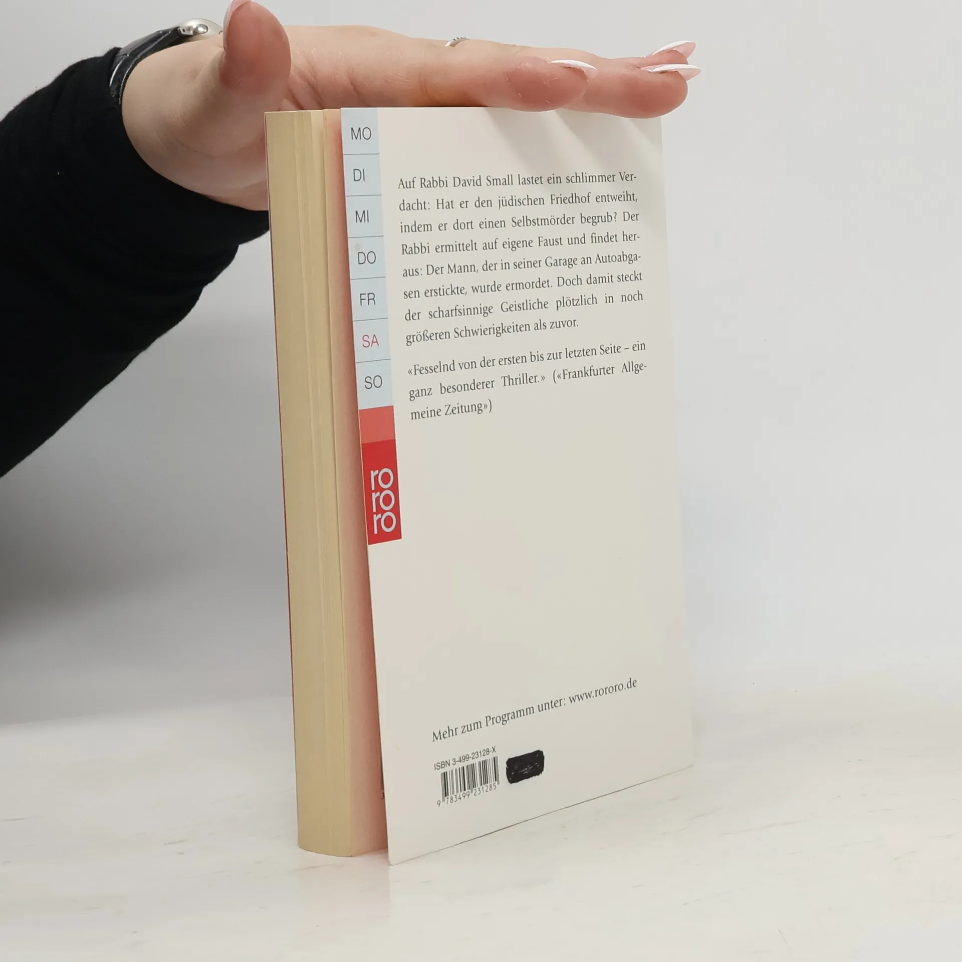 Auf Rabbi David Small lastet ein schlimmer Verdacht: Hat er den jüdischen Friedhof entweiht, indem er dort einen Selbstmörder begrub? Der Rabbi und Amateurdetektiv ermittelt auf eigene Faust und findet heraus, dass der Mann ermordet wurde. Doch damit steckt er plötzlich in noch viel größeren Schwierigkeiten als zuvor. Der zweite Fall für Rabbi David Small, den kurzsichtigen, unsportlichen, aber überaus scharfsinnigen Schriftgelehrten, der nie um eine treffende Sentenz aus dem Talmud verlegen ist.