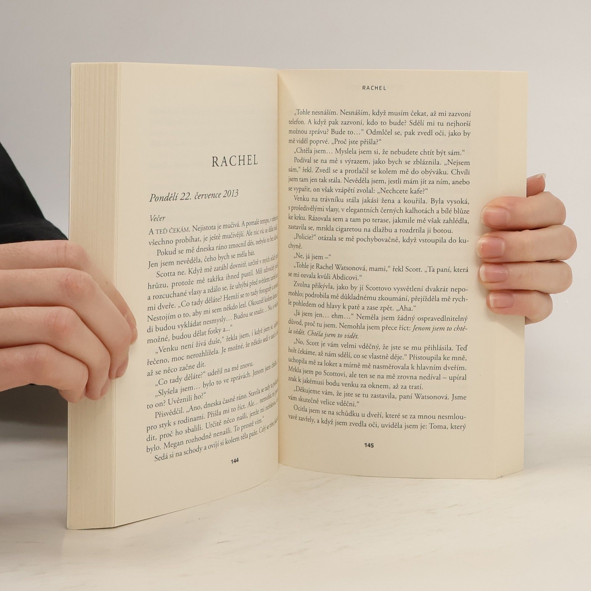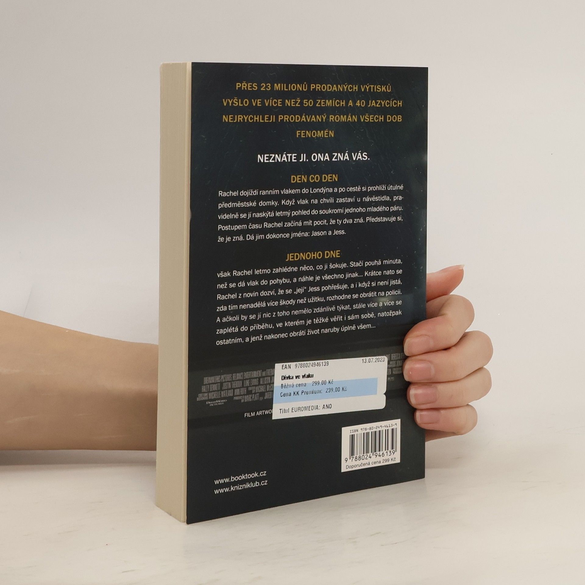 Román, který si podmanil všechny žebříčky bestsellerů na obou stranách Atlantiku, trhá rekordy v rychlosti prodeje a je kritikou označován za letošní Zmizelou. Potřebujete vědět víc? Rachel dojíždí ranním vlakem do Londýna. Den co den si prohlíží útulné předměstské domky, a když vlak na chvíli zastaví u návěstidla, naskýtá se jí pravidelně letmý pohled do soukromí mladého páru. Postupem času Rachel začíná mít pocit, že ty dva lidi zná. Představuje si, že je zná. Dá jim dokonce jména: Jason a Jess. Jednoho dne však zahlédne něco, co ji šokuje. Stačí pouhá minuta, než se dá vlak zase do pohybu, a náhle je všechno jinak… Krátce nato se Rachel dozví, že se „její“ Jess pohřešuje, a proto se rozhodne obrátit na policii. Není si jistá, zda tím nenadělá více škody než užitku, zatímco se stále více zaplétá do příběhu, který není její, ale jenž nakonec obrátí naruby život úplně všem…
