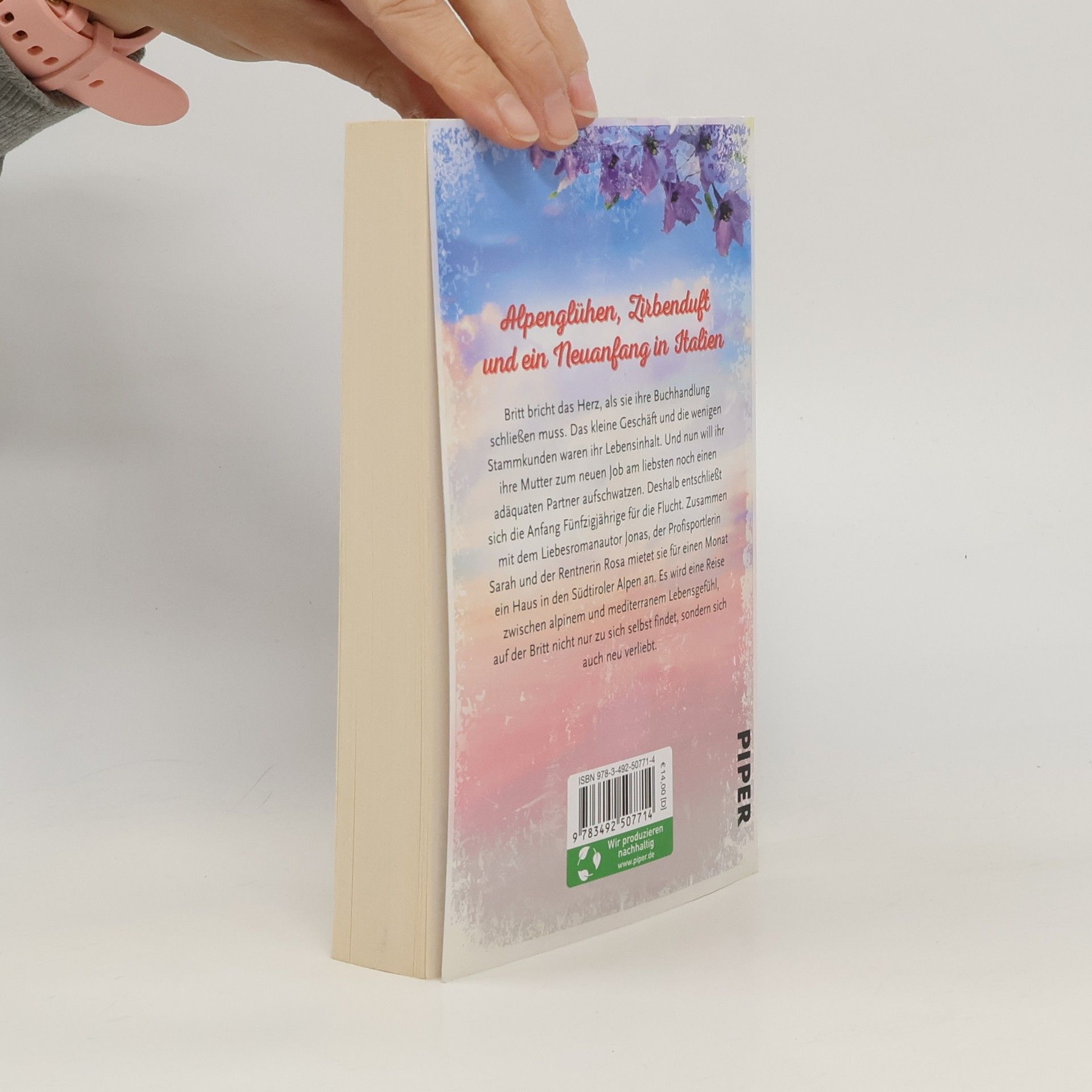 Alpenglühen und Zirbenduft im malerischen Italien Britt bricht das Herz, als sie ihre Buchhandlung schließen muss. Das kleine Geschäft und die wenigen Stammkunden waren ihr Lebensinhalt. Und nun will ihr ihre Mutter zum neuen Job am liebsten noch einen adäquaten Partner aufschwatzen. Deshalb entschließt sich die Anfang Fünfzigjährige für die Flucht. Zusammen mit dem Liebesromanautor Jonas, der Sportlerin Sarah und der Rentnerin Rosa mietet sie für einen Monat ein Haus in den Südtiroler Alpen an. Es wird eine Reise zwischen alpinem und mediterranem Lebensgefühl, auf der Britt nicht nur zu sich selbst finden muss, sondern sich auch neu verliebt.