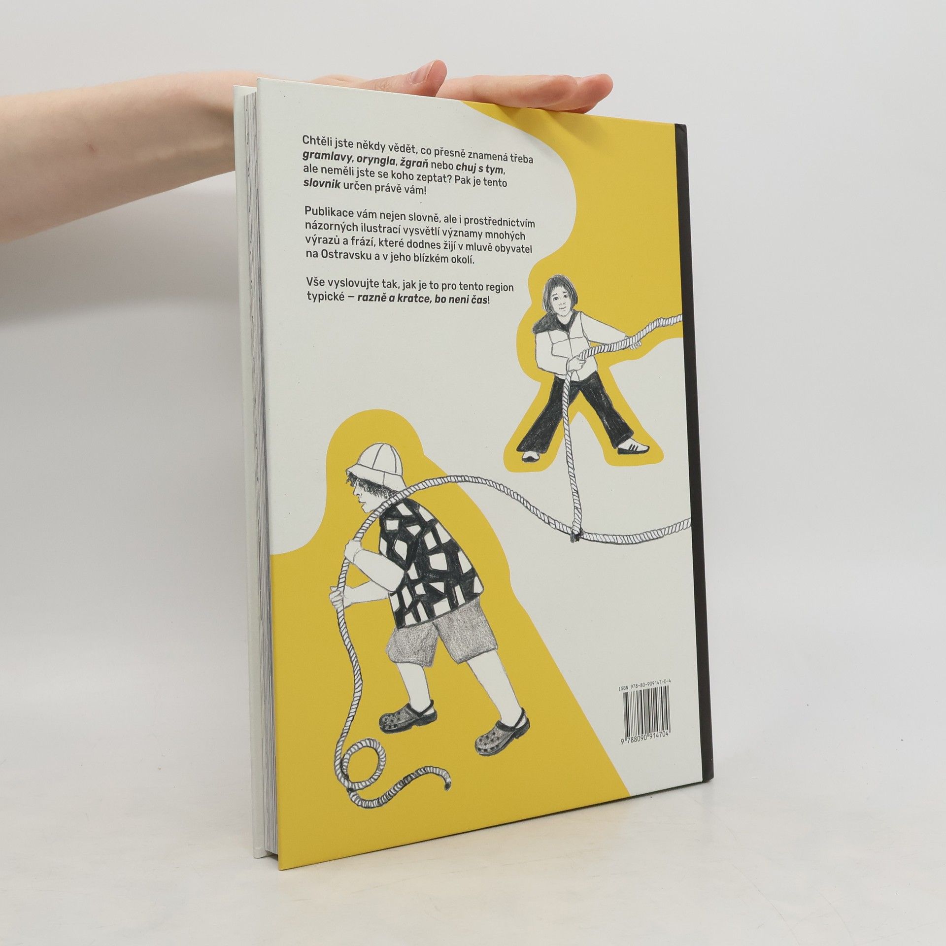 Chtěli jste někdy vědět, co přesně znamená třeba gramlavy, oryngla, žgraň nebo chuj s tym, ale neměli jste se koho zeptat? Pak je tento slovnik určen právě vám! Publikace vám nejen slovně, ale i prostřednictvím názorných ilustrací vysvětlí významy mnohých výrazů a frází, které dodnes žijí v mluvě obyvatel na Ostravsku a v jeho blízkém okolí. Vše vyslovujte tak, jak je to pro tento region typické — razně a kratce, bo neni čas!