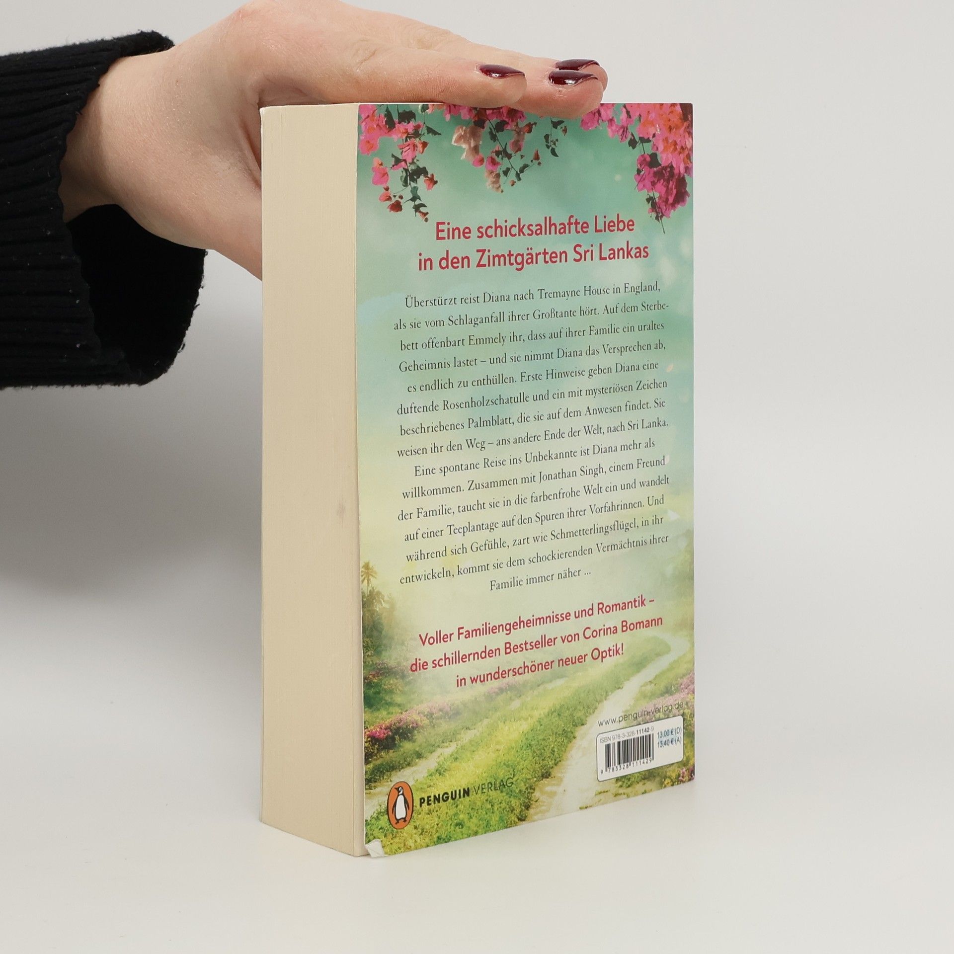 Eine schicksalhafte Liebe in den Zimtgärten Sri Lankas Überstürzt reist Diana nach Tremayne House in England, als sie vom Schlaganfall ihrer Großtante hört. Auf dem Sterbebett offenbart Emmely ihr, dass auf ihrer Familie ein uraltes Geheimnis lastet – und sie nimmt Diana das Versprechen ab, es endlich zu enthüllen. Erste Hinweise geben Diana eine duftende Rosenholzschatulle und ein mit mysteriösen Zeichen beschriebenes Palmblatt, die sie auf dem Anwesen findet. Sie weisen ihr den Weg – ans andere Ende der Welt, nach Sri Lanka. Eine spontane Reise ins Unbekannte ist Diana mehr als willkommen. Zusammen mit Jonathan Singh, einem Freund der Familie, taucht sie in die farbenfrohe Welt ein und wandelt auf einer Teeplantage auf den Spuren ihrer Vorfahrinnen. Und während sich Gefühle, zart wie Schmetterlingsflügel, in ihr entwickeln, kommt sie dem schockierenden Vermächtnis ihrer Familie immer näher ... Für noch mehr große Gefühle und bewegende Schicksale lesen Sie auch die Waldfriede-Saga der Bestsellerautorin: 1. Sternstunde. Die Schwestern vom Waldfriede 2. Leuchtfeuer. Die Schwestern vom Waldfriede 3. Sturmtage. Die Schwestern vom Waldfriede 4. Wunderzeit. Die Schwestern vom Waldfriede