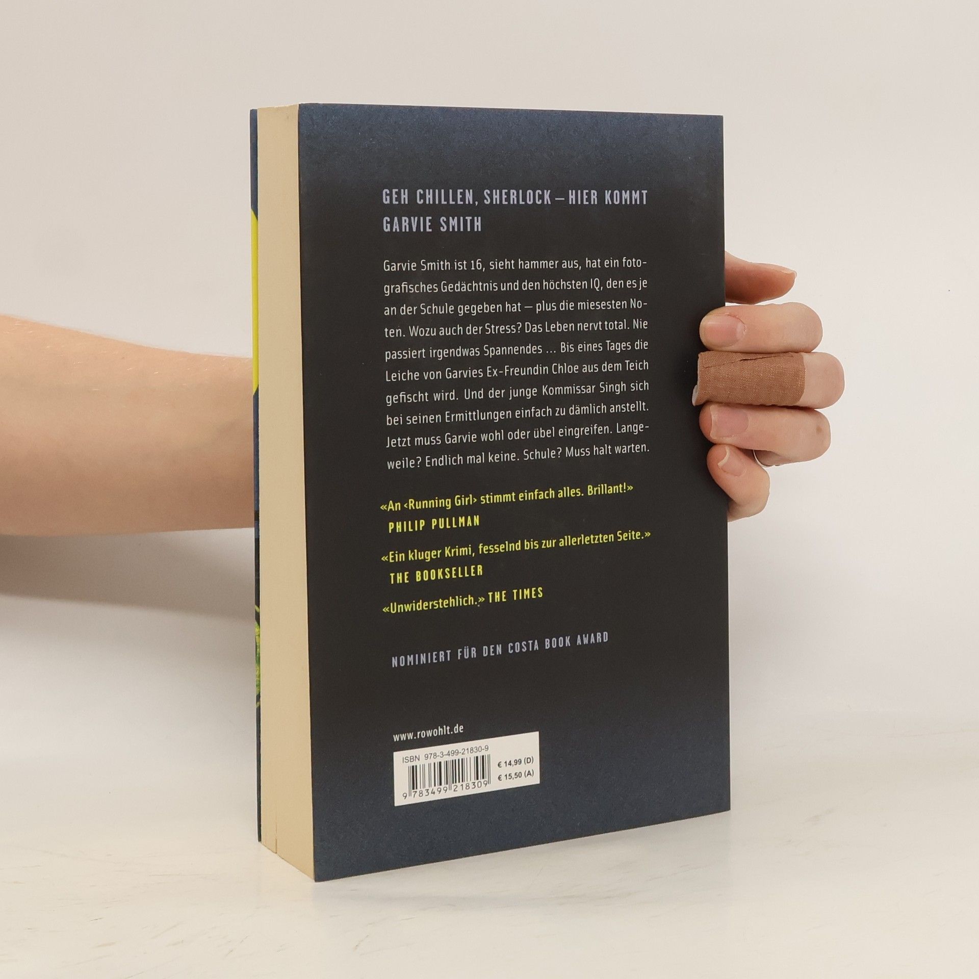 Geh chillen, Sherlock – hier kommt Garvie Smith Garvie Smith ist 16, sieht hammer aus, hat ein fotografisches Gedächtnis und den höchsten IQ, den es je an der Schule gegeben hat - plus die miesesten Noten. Wozu auch der Stress? Das Leben nervt total. Nie passiert irgendwas Spannendes … Bis eines Tages die Leiche von Garvies Ex-Freundin Chloe aus dem Teich gefischt wird. Und der junge Kommissar Singh sich bei seinen Ermittlungen einfach zu dämlich anstellt. Jetzt muss Garvie wohl oder übel eingreifen. Langeweile? Endlich mal keine. Schule? Muss halt warten. Nominiert für den Costa Book Award