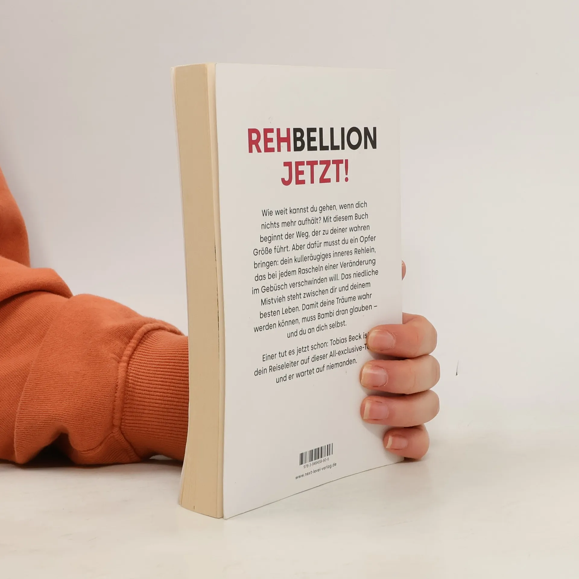 Rehbellion jetzt! Wie weit kannst du gehen, wenn dich nichts mehr aufhält? Mit diesem Buch beginnt der Weg, der zu deiner wahren Größe führt. Aber dafür musst du ein Opfer bringen: dein kulleräugiges inneres Rehlein, das bei jedem Rascheln einer Veränderung im Gebüsch verschwinden will. Das niedliche Mistvieh steht zwischen dir und deinem besten Leben. Damit deine Träume wahr werden können, muss Bambi dran glauben – und du an dich selbst. Einer tut es jetzt schon: Tobias Beck ist dein Reiseleiter auf dieser all exclusive-Tour, und er wartet auf niemanden.
