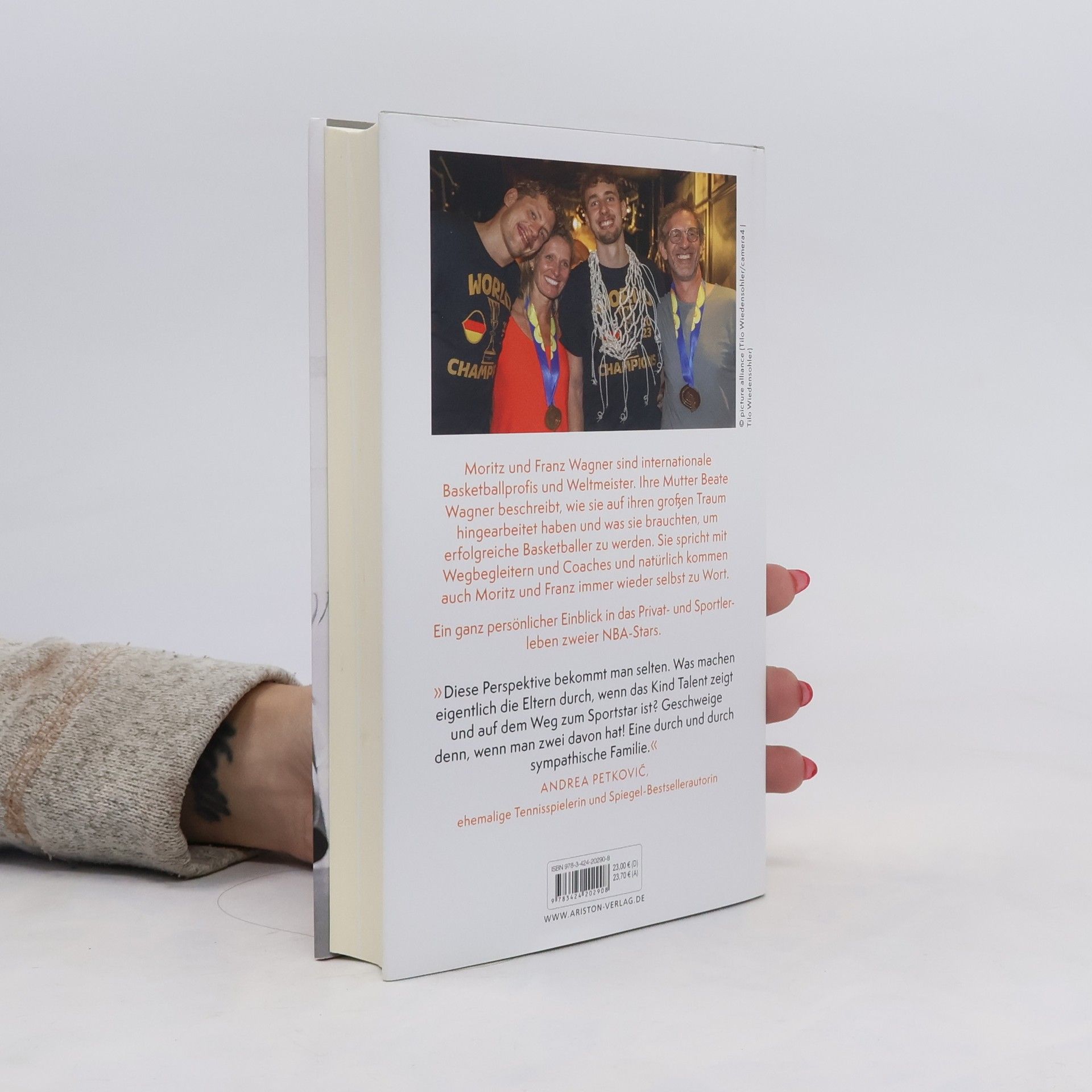 Von Berlin in die USA Moritz und Franz Wagner sind internationale Basketballprofis und Weltmeister. Ihre Mutter Beate Wagner beschreibt, wie sie auf ihren großen Traum hingearbeitet haben und was sie brauchten, um erfolgreiche Basketballer zu werden. Sie spricht mit Wegbegleitern und Coaches und natürlich kommen auch Moritz und Franz immer wieder selbst zu Wort. Ein ganz persönlicher Einblick in das Privat- und Sportlerleben zweier NBA-Stars. »Diese Perspektive bekommt man selten. Was machen eigentlich die Eltern durch, wenn das Kind Talent zeigt und auf dem Weg zum Sportstar ist? Geschweige denn, wenn man zwei davon hat! Eine durch und durch sympathische Familie.« ANDREA PETKOVIĆ, ehemalige Tennisspielerin und Spiegel-Bestsellerautorin Die unglaubliche Erfolgsgeschichte der Wagner-Brüder – hautnah, spannend und informativ! Moritz und Franz Wagner leben den Traum vieler Basketballer – beide spielen in der NBA Ausstattung: mit Bildteil
