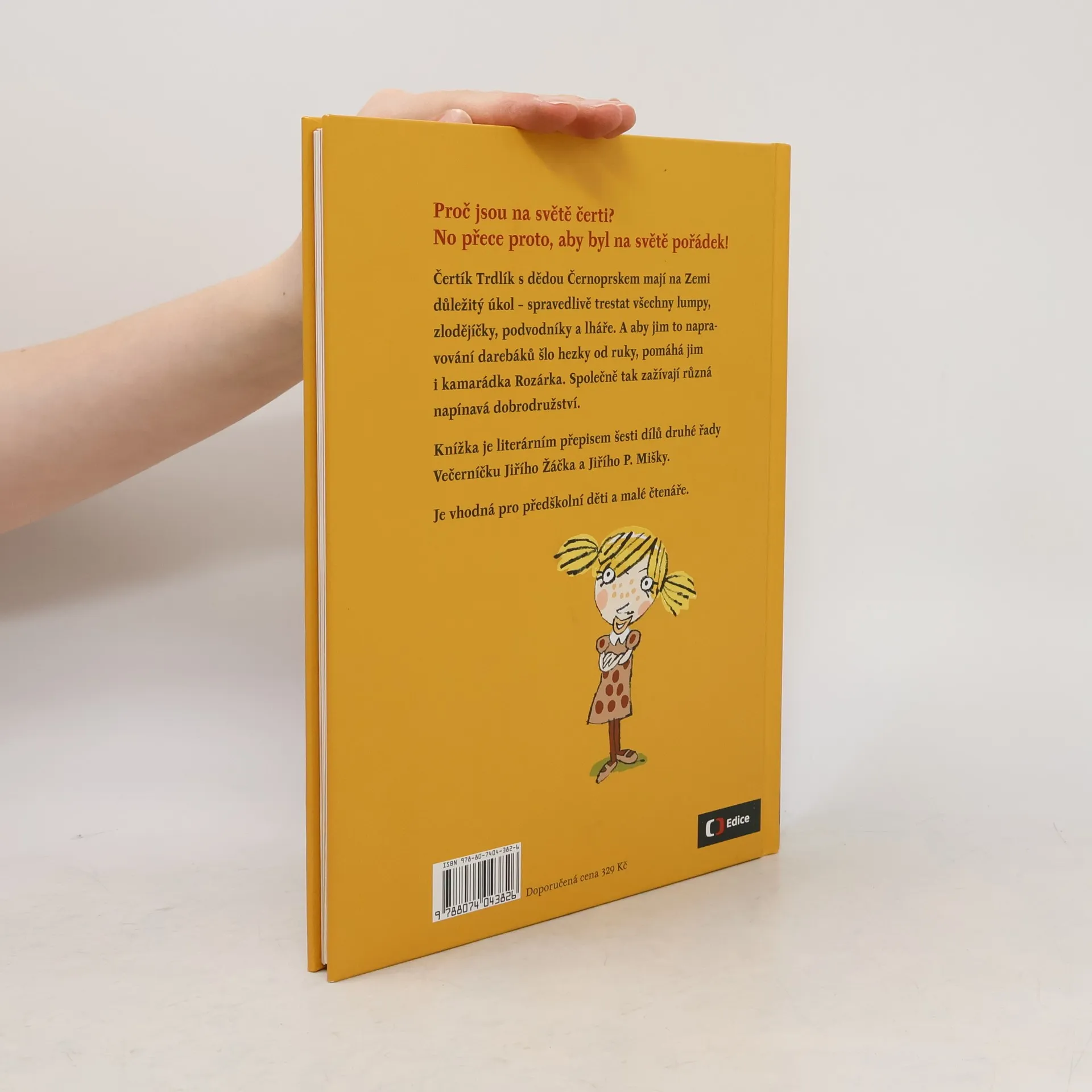 Proč jsou na světě čerti? No přece proto, aby byl na světě pořádek! Čertík Trdlík s dědou Černoprskem mají na Zemi důležitý úkol – spravedlivě trestat všechny lumpy, zlodějíčky, podvodníky a lháře. A aby jim to napravování darebáků šlo hezky od ruky, pomáhá jim i kamarádka Rozárka. Společně tak zažívají různá napínavá dobrodružství. Knížka je literárním přepisem šesti dílů druhé řady Večerníčku Jiřího Žáčka a Jiřího P. Mišky. Je vhodná pro předškolní děti a malé čtenáře. Večerníček namluvil Ivan Trojan.