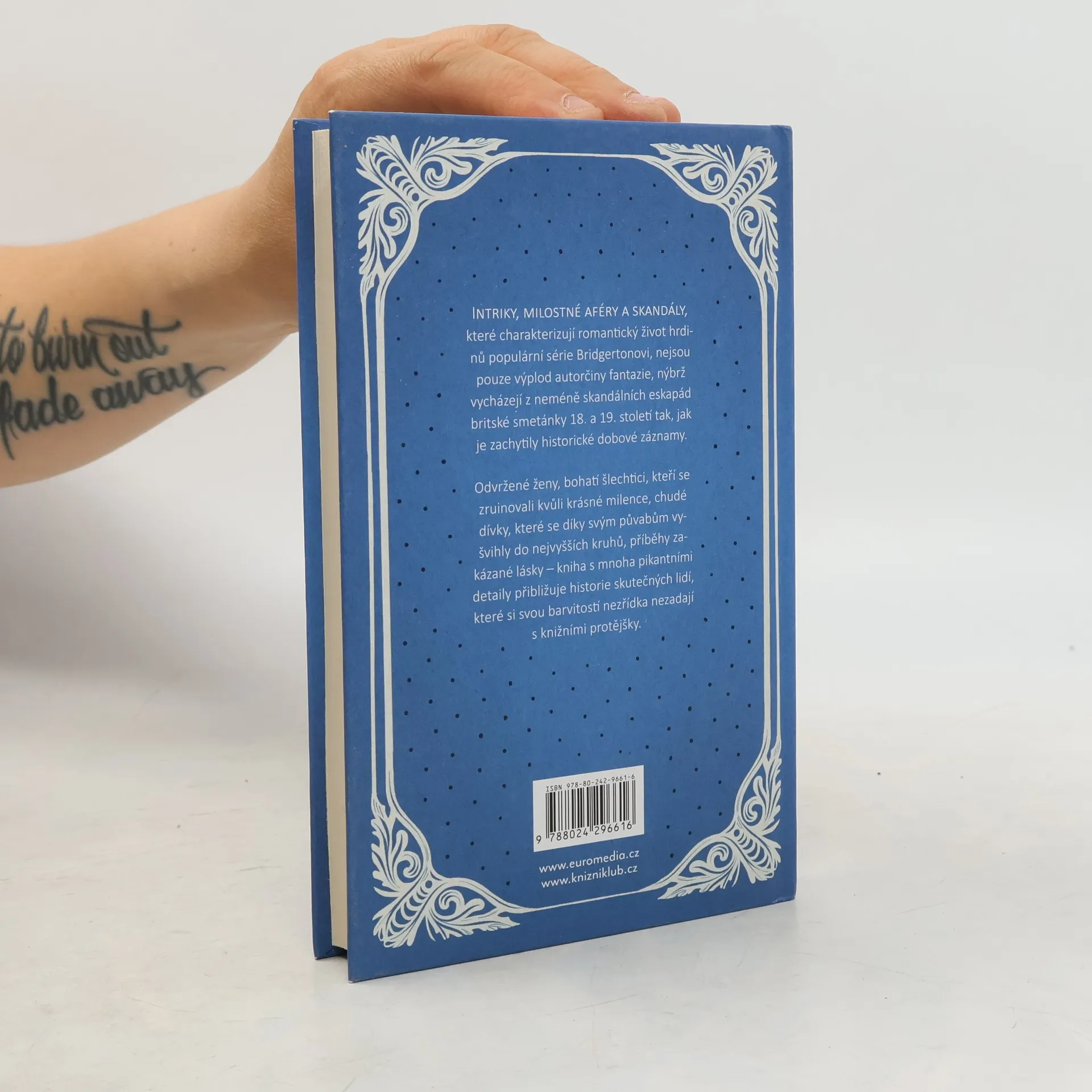 Intriky, milostné aféry a skandály, které charakterizují romantický život hrdinů populární série Bridgertonovi, nejsou pouze výplod autorčiny fantazie, nýbrž vycházejí z neméně skandálních eskapád britské smetánky 18. a 19. století tak, jak je zachytily historické dobové záznamy. Odvržené ženy, bohatí šlechtici, kteří se zruinovali kvůli krásné milence, chudé dívky, které se díky svým půvabům vyšvihly do nejvyšších kruhů, příběhy zakázané lásky – kniha s mnoha pikantními detaily přibližuje historie skutečných lidí, které si svou barvitostí nezřídka nezadají s knižními protějšky.