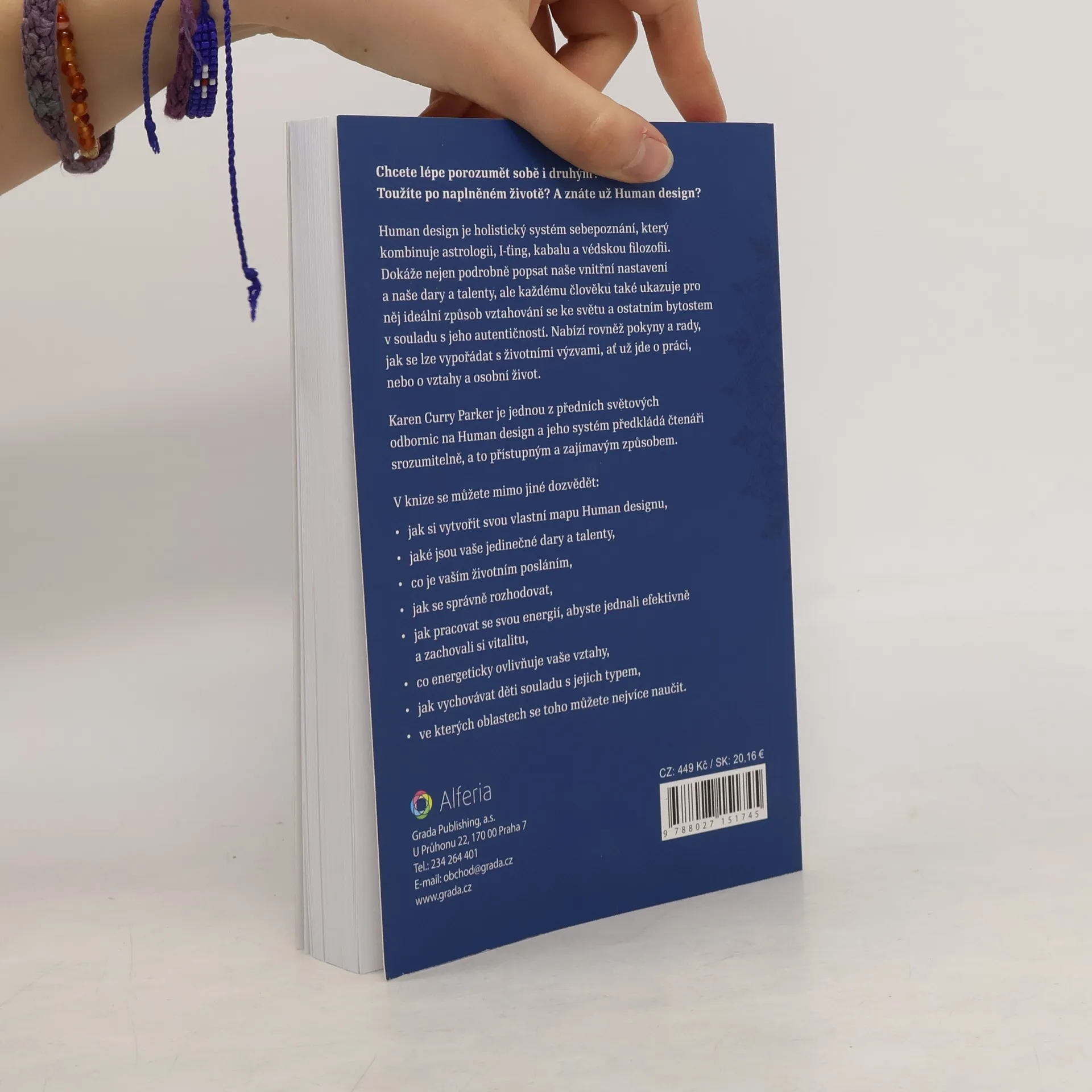 Chcete lépe porozumět sobě i druhým? Toužíte po naplněném životě? A znáte už Human design? Human design je holistický systém sebepoznání, který kombinuje astrologii, I-ťing, kabalu a védskou filozofii. Dokáže nejen podrobně popsat naše vnitřní nastavení a naše dary a talenty, ale každému člověku také ukazuje pro něj ideální způsob vztahování se ke světu a ostatním bytostem v souladu s jeho autentičností. Nabízí rovněž pokyny a rady, jak se lze vypořádat s životními výzvami, ať už jde o práci, nebo o vztahy a osobní život. Karen Curry Parker je jednou z předních světových odbornic na Human design a jeho systém předkládá čtenáři srozumitelně, a to přístupným a zajímavým způsobem. V knize se můžete mimo jiné dozvědět: jak si vytvořit svou vlastní mapu Human designu, jaké jsou vaše jedinečné dary a talenty, co je vaším životním posláním, jak se správně rozhodovat, jak pracovat se svou energií, abyste jednali efektivně a zachovali si vitalitu, co energeticky ovlivňuje vaše vztahy, jak vychovávat děti souladu s jejich typem, * ve kterých oblastech se toho můžete nejvíce naučit.