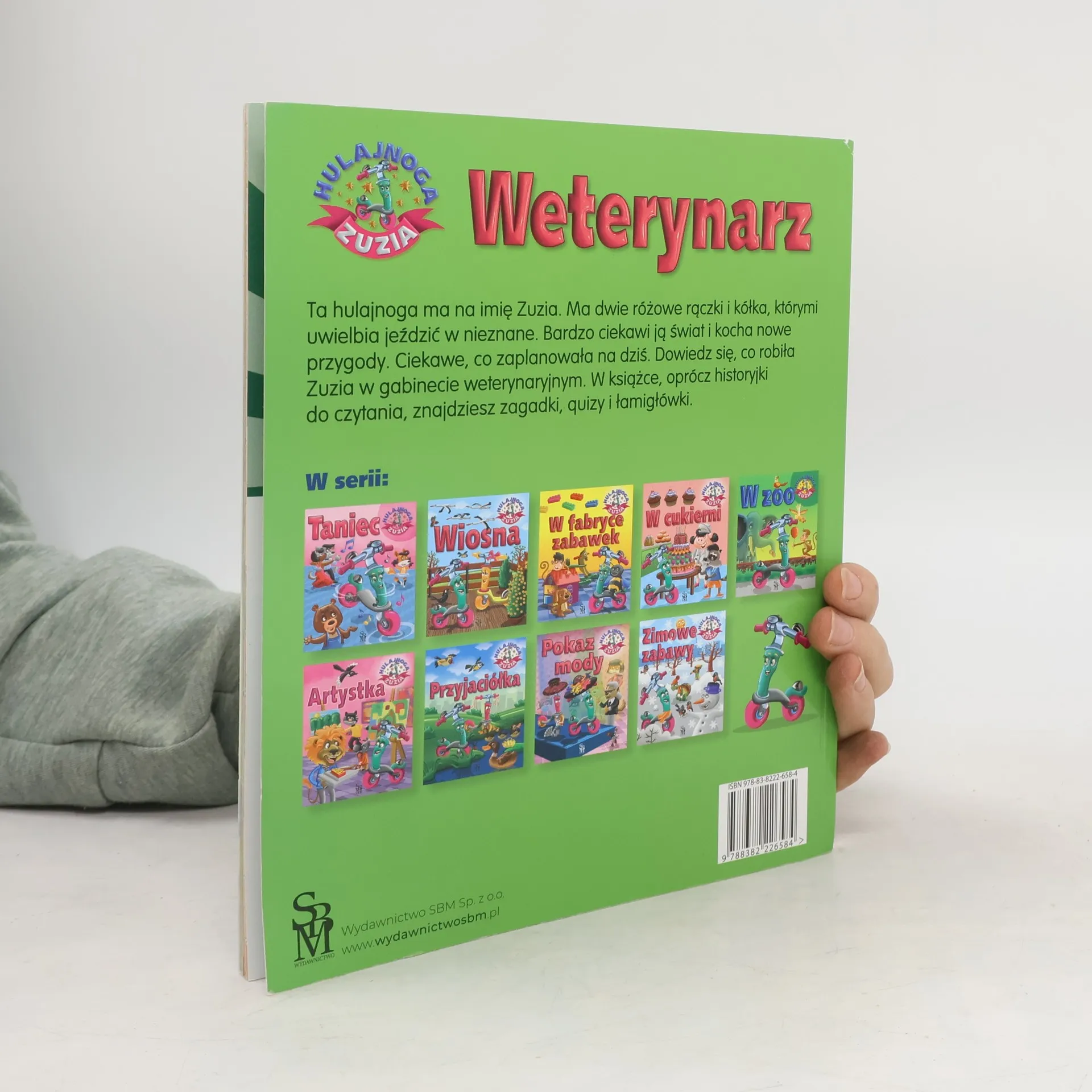 Ta hulajnoga ma na imię Zuzia. Ma dwie różowe rączki i kółka, którymi uwielbia jeździć w nieznane. Bardzo ciekawi ją świat i kocha nowe przygody. Ciekawe, co zaplanowała na dziś. Dowiedz się, co robiła Zuzia w gabinecie weterynaryjnym. W książeczce oprócz historyjki do czytania, znajdziesz zagadki, quizy i łamigłówki.