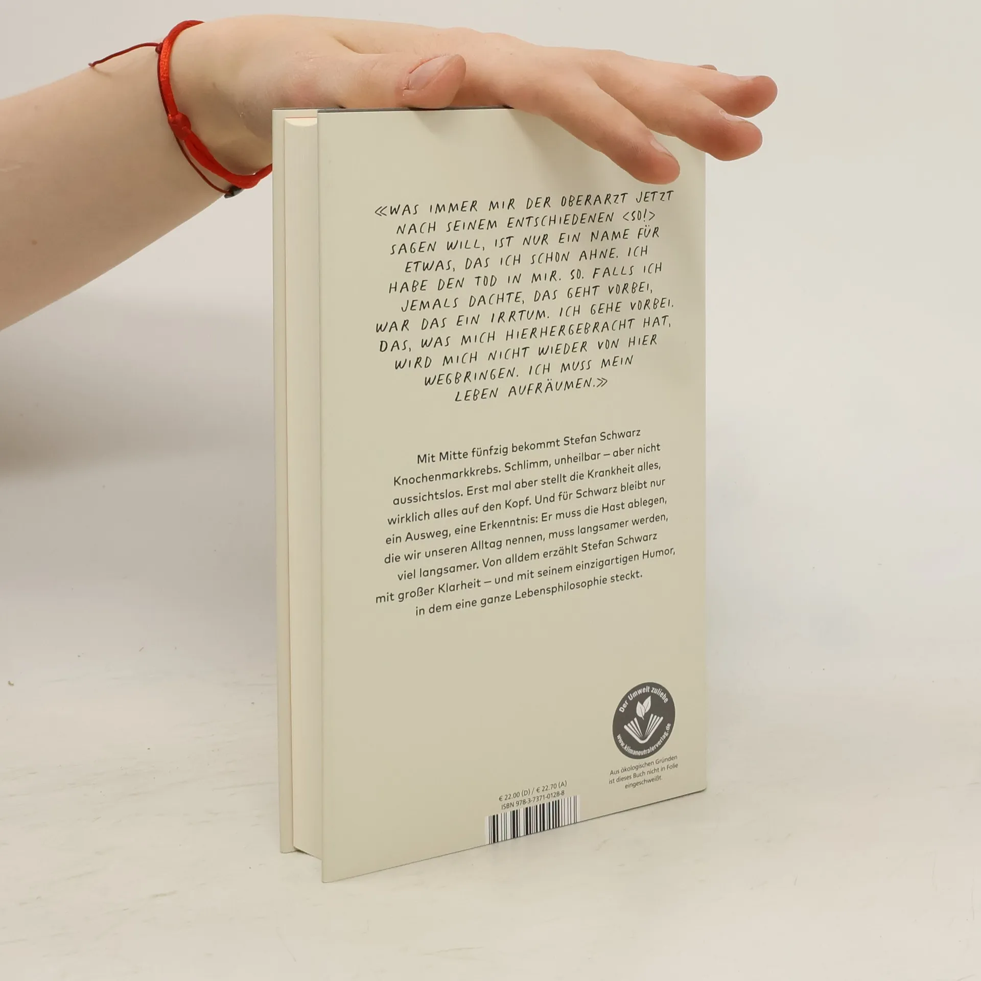 Mit Mitte fünfzig bekommt Stefan Schwarz Krebs. Besser gesagt, der Krebs bekommt ihn. Denn Schwarz ist erfahren im Umgang mit existenziellen Verwerfungen: «Wenn das Schicksal zuschlägt, schlage ich zurück!» Wie eine «Marie Kondo der Seele» beginnt er, sein Leben aufzuräumen, und macht dabei überraschende Entdeckungen. Auch legt er die Hast ab, die wir alle in unserem Alltag kennen, den ständigen Druck, mit irgendetwas fertigwerden zu müssen. Und besinnt sich auf die Langsamkeit, den Moment. Von all dem erzählt Stefan Schwarz mit großer Klarheit – und mit seinem einzigartigen Humor, in dem eine ganze Lebensphilosophie steckt. Ruhig, tief und mit wohltuender Selbstironie blickt er auf sein Dasein; innerlich frei und doch um Zukunft kämpfend, schreibt er über das mögliche Ende und das damit verbundene Aufwachen: «Das ist doch der ganze Sinn von Krebs. Dass man aufhört, sich und anderen was vorzumachen, dass man innehält, dass man aufwacht und sich die Augen reibt.» Und er schreibt über das, was stattgefunden hat und stattfindet: das Leben in seiner Fülle, das Stefan Schwarz wie unter einem Brennglas erfasst. Ein außergewöhnliches Buch – aufrüttelnd, bewegend, befreiend.