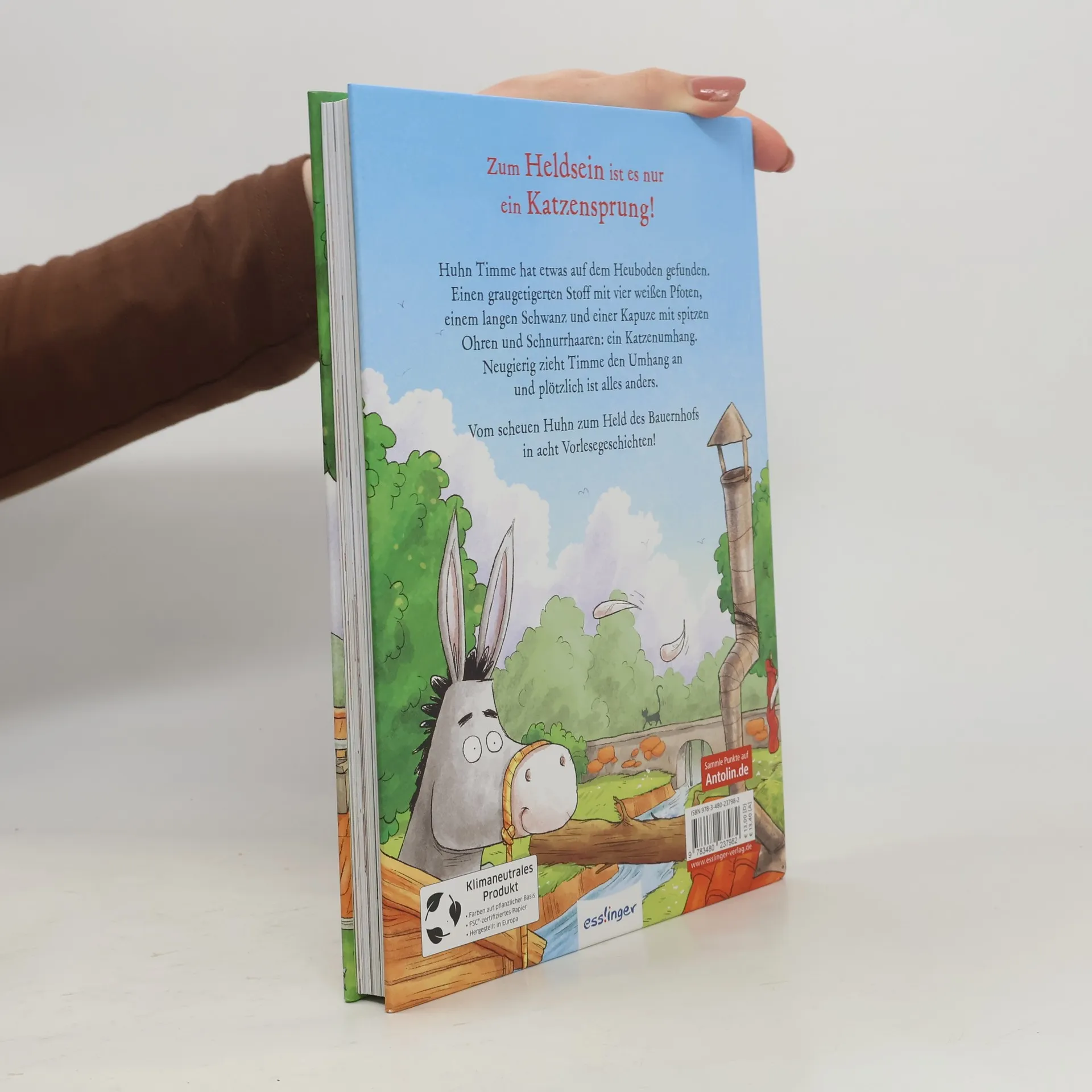 Zum Heldsein ist es nur ein Katzensprung – Geschichten über tierische Freunde von Bernhard Hoëcker für Kinder ab 5 Jahren. Alles beginnt an einem ruhigen Tag auf dem Bauernhof. Huhn Timme entdeckt einen Katzenumhang auf dem Heuboden, neugierig wirft er ihn sich über – und plötzlich ist alles anders: Er sieht schärfer, er hört besser, er kann riesige Sprünge machen. Und er spürt ganz neue Kräfte in sich. Aus dem scheuen Timme ist ein selbstbewusstes Huhn geworden, Timme ist ab jetzt das Katzenhuhn! Mit Umhang, Mut und jeder Menge guter Freunde springt das Katzenhuhn von einem Abenteuer ins nächste – humorvoll und warmherzig erzählt von Bernhard Hoëcker und Eva von Mühlenfels. Und eines ist am Ende sicher: In jedem noch so kleinen Huhn steckt etwas Besonderes, man muss sich nur trauen, loszuspringen! Acht hühnerstarke Vorlesegeschichten in idealer Vorleselänge (ca. 10 Minuten), mit vielen fröhlichen Bildern von Dominik Rupp.