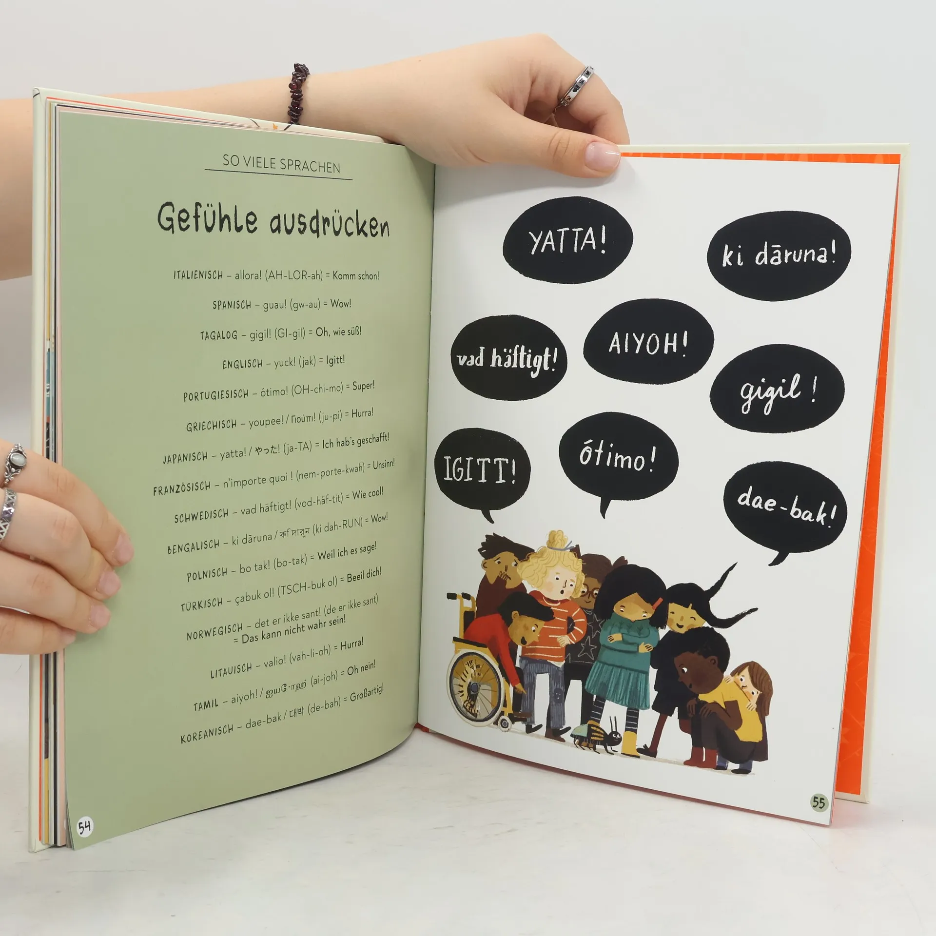 Alle Kinder dieser Welt Komm mit in die Alltagswelt der Kinder dieser Erde! Wo essen die Kinder Fisch zum Frühstück? Wo schlafen sie in einer Hängematte und wo auf einem gemauerten Ofen? Wie sagt man »Bitte« auf Samoanisch und »Danke« auf Griechisch? Wo fahren die Schüler mit einer Drahtseil-Rutsche in die Schule? Und wo spielen die Kinder am liebsten »Fang den Drachenschwanz«? Ein kunterbuntes Buch voller spannender, lustiger und wissenswerter Fakten, zauberhaft und witzig illustriert. Zum Lesen und Vorlesen und Immer-wieder-Anschauen! Ausstattung: Mit fbg. Illustrationen