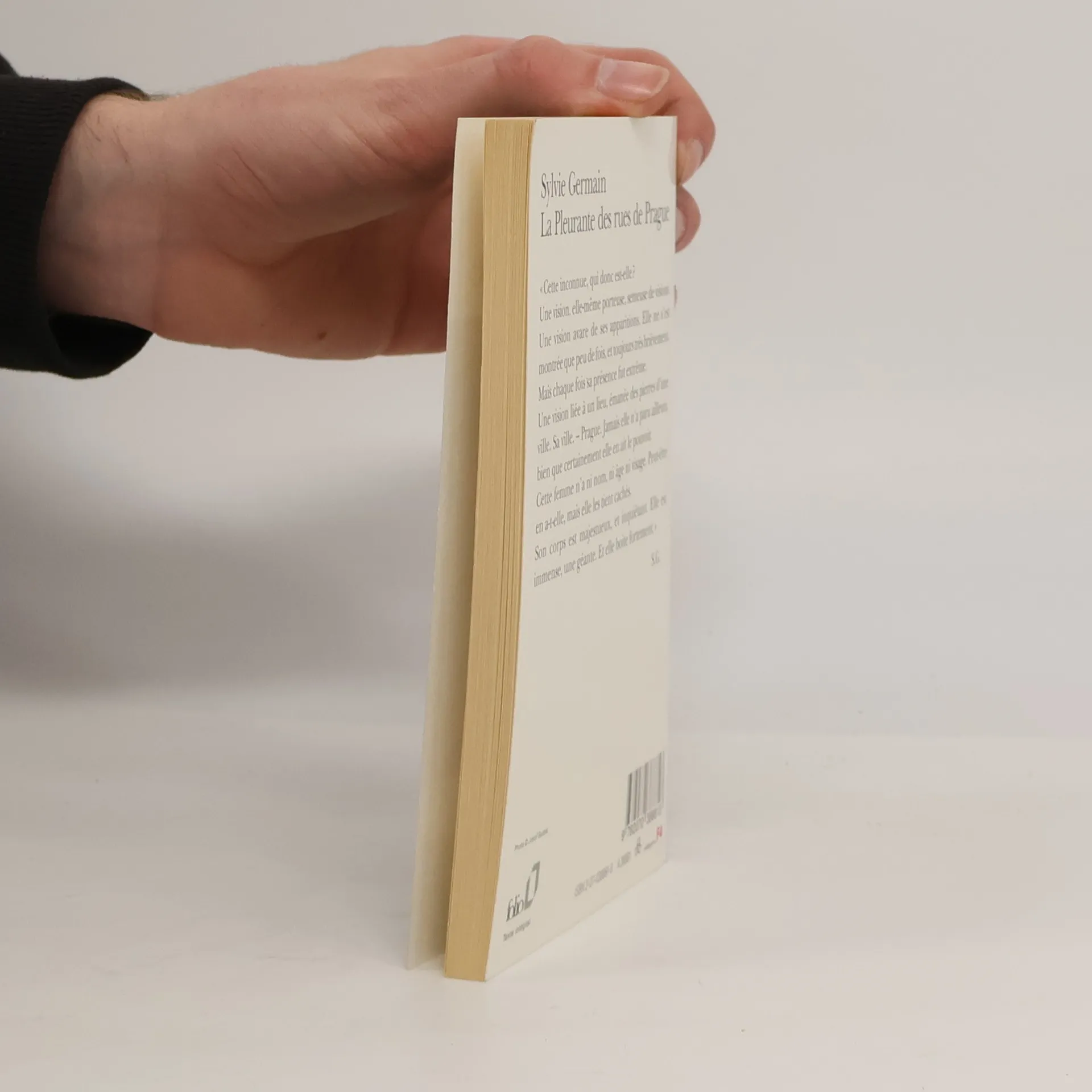 «Cette inconnue, qui donc est-elle ?Une vision, elle-même porteuse, semeuse de visions.Une vision avare de ses apparitions. Elle ne s'est montrée que peu de fois, et toujours très brièvement. Mais chaque fois sa présence fut extrême.Une vision liée à un lieu, émanée des pierres d'une ville. Sa ville. - Prague. Jamais elle n'a paru ailleurs, bien que certainement elle en ait le pouvoir.Cette femme n'a ni nom, ni âge ni visage. Peut-être en a-t-elle, mais elle les tient cachés.Son corps est majestueux, et inquiétant. Elle est immense, une géante. Et elle boite fortement.»Sylvie Germain.