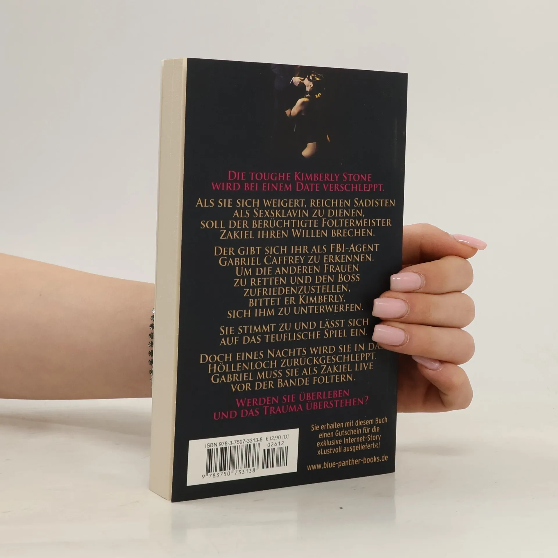 Die toughe Kimberly Stone wird bei einem Date verschleppt. Als sie sich weigert, reichen Sadisten als Sexsklavin zu dienen, soll der berüchtigte Foltermeister Zakiel ihren Willen brechen. Der gibt sich ihr als FBI-Agent Gabriel Caffrey zu erkennen. Um die anderen Frauen zu retten und den Boss zufriedenzustellen, bittet er Kimberly, sich ihm zu unterwerfen. Sie stimmt zu und lässt sich auf das teuflische Spiel ein. Doch eines Nachts wird sie in das Höllenloch zurückgeschleppt. Gabriel muss sie als Zakiel live vor der Bande foltern. Werden sie überleben und das Trauma überstehen? Diese Ausgabe ist vollständig, unzensiert und enthält keine gekürzten erotischen Szenen.