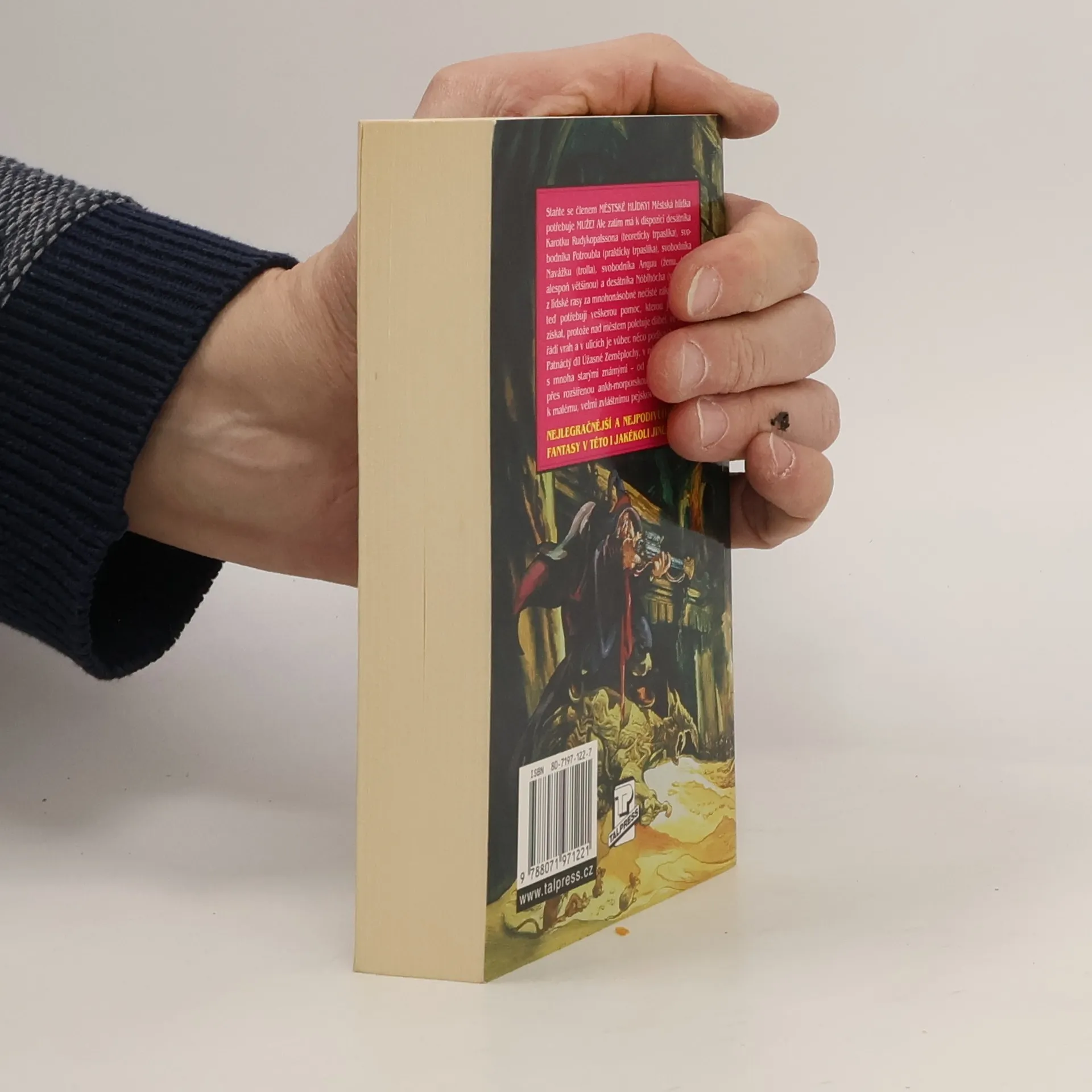 Staňte se členem MĚSTSKÉ HLÍDKY! Městská hlídka potřebuje MUŽE! Ale zatím má k dispozici desátníka Karotku Rudykopalssona (teoreticky trpaslíka), svobodníka Potroubla (prakticky trpaslíka), svobodníka Navážku (trolla), svobodníka Anguu (ženu...tedy alespoň většinou) a desátníka Nóblhócha (vyloučen z lidské rasy za mnohonásobné nečisté zákroky). A ti teď potřebují veškerou pomoc, kterou je možno získat, protože nad městem poletuje ďábel, ve městě řádí vrah a v ulicích je vůbec něco podivného. Patnáctý díl Úžasné Zeměplochy, v němž se setkáme s mnoha starými známými - od lady Berankinové přes rozšířenou ankh-morporskou noční hlídku až k malému, velmi zvláštnímu pejskovi. Úžasná Zeměplocha, kniha 15., přeložil Jan Kantůrek.