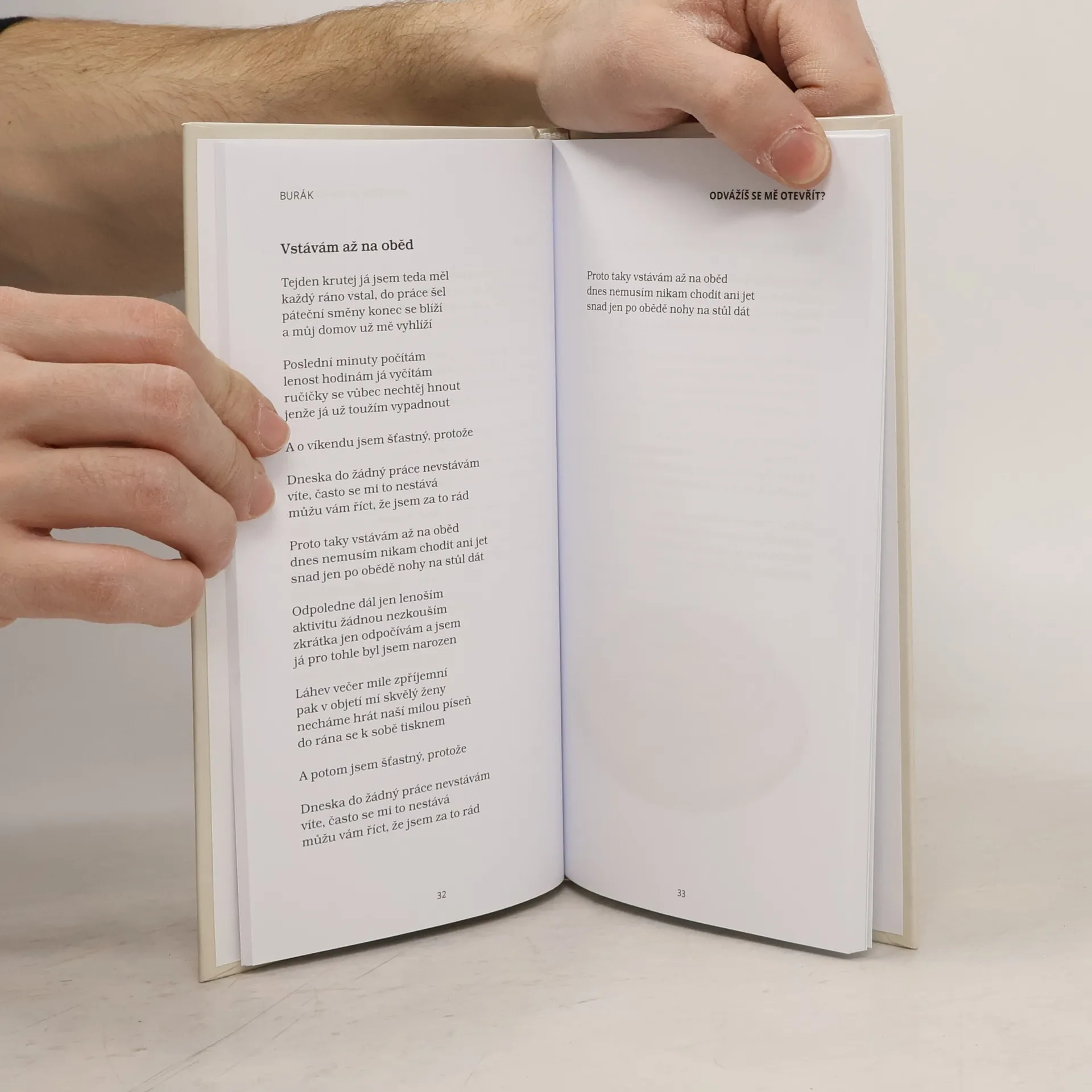 Druhá knižní sbírka současného autora přináší verše, jejichž cílem je čtenáře jak pobavit, tak i přivést k zamyšlení. Stačí jen odvážit se otevřít tuto knihu... Otevřít se v životě dá leccos... Kniha, láhev, něčí srdce... Vždy to chce odvahu. Podobně jako každá cesta začíná prvním krokem a následně začíná dobrodružství, tak i otevřením čehokoliv se rozjede pomyslný vlak. Otevřeně debatujeme, rozčilujeme se, ale i si dáváme najevo lásku, soucit, porozumění. Vždy to všechno nějak dopadne, když ne dobře, špatně určitě. Nakladatelská anotace.