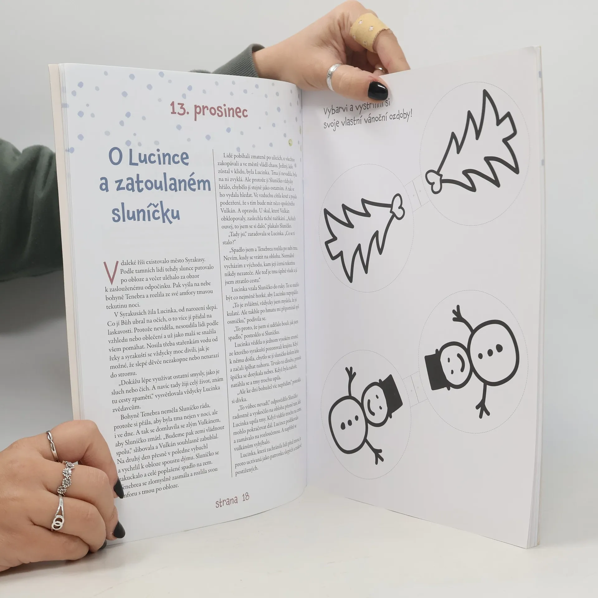24 příběhů vás den za dnem bude provázet celým adventem. Dozvíte se, proč na Vánoce pečeme cukroví a věšíme jmelí. Zjistíte, jak Barborka našla svého milého pomocí rozkvetlé jabloně a jak to bylo s Mikulášem, kam se Lucii zakutálelo sluníčko a proč je důležité dodržet dané slovo. Příběhy, které vycházejí z tradičních českých Vánoc, jsou psané krásným jazykem, tak akorát dlouhé, laskavé a poučné. A pro šikovné děti bonus navíc – 12 skládacích vánočních ozdob z papíru. Zapalte svíčky, čtěte si s dětmi, povídejte si a tvořte – to je vánoční atmosféra, na kterou budou vzpomínat celý život.
