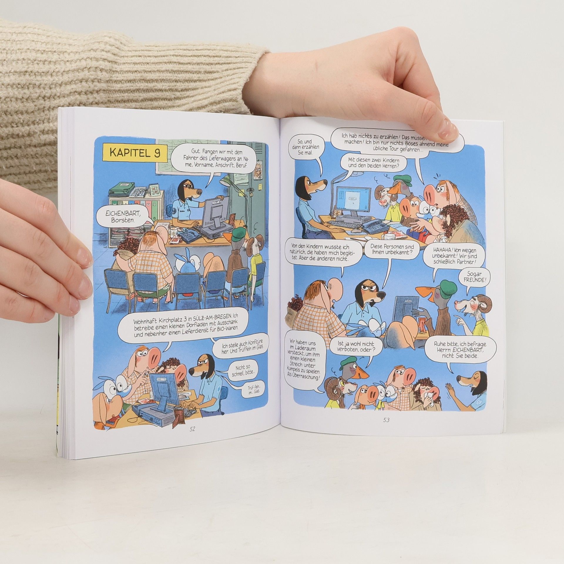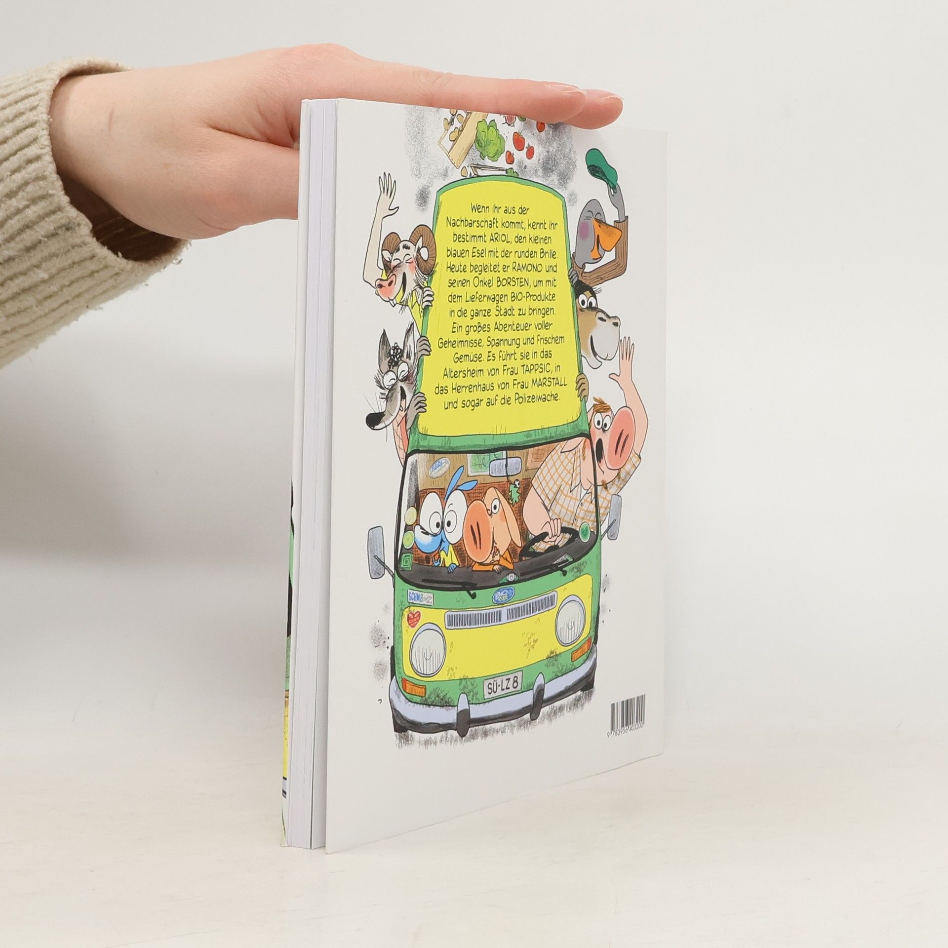 Ramonos Onkel ist Lebensmittelhändler auf dem Lande. Einmal im Monat kommt er in die Stadt, um seine guten Bio-Produkte zu verkaufen. Und heute nimmt er Ramono und Ariol mit! Ob in Altersheim oder Gutshaus, überall warten Kund:innen. Und Süßigkeiten für die Jungs! Doch dann gerät alles außer Kontrolle. Erst entdecken Ariol und Ramono hinten im Transporter zwei blinde Passagiere. Und plötzlich werden sie auch noch verfolgt... aber von wem? Das dicke Ende: Nach einem Autounfall landen alle auf der Polizeiwache. Auweia! Endlich gibt es wieder eine lange Geschichte um unseren kleinen blauen Lieblingsesel mit der runden Brille und seinen ferkeligen Freund. Ein großes Abenteuer voller Spannung, Spaß und frischem Gemüse.