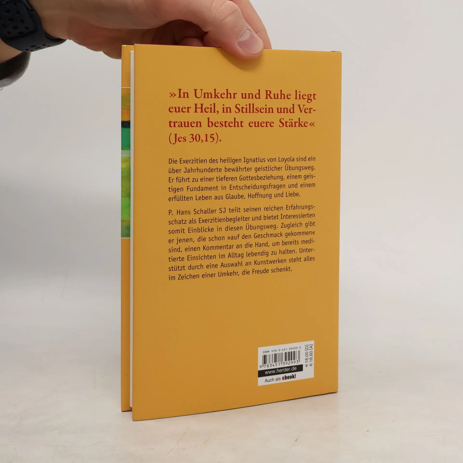 P. Hans Schaller SJ blickt auf einen reichen Erfahrungsschatz an geistlicher Begleitung und Exerzitien zurück. In kurzen Skizzen deutet er seinen Lesern den Exerzitienweg des Ignatius von Loyola und gibt praktische Hinweise für die Umsetzung in den Alltag. Er ist überzeugt: Niemand muss aus dem Stand Großes leisten. Alles beginnt mit der Erfahrung, geliebt zu sein – und dem ersten kleinen Schritt in die richtige Richtung.