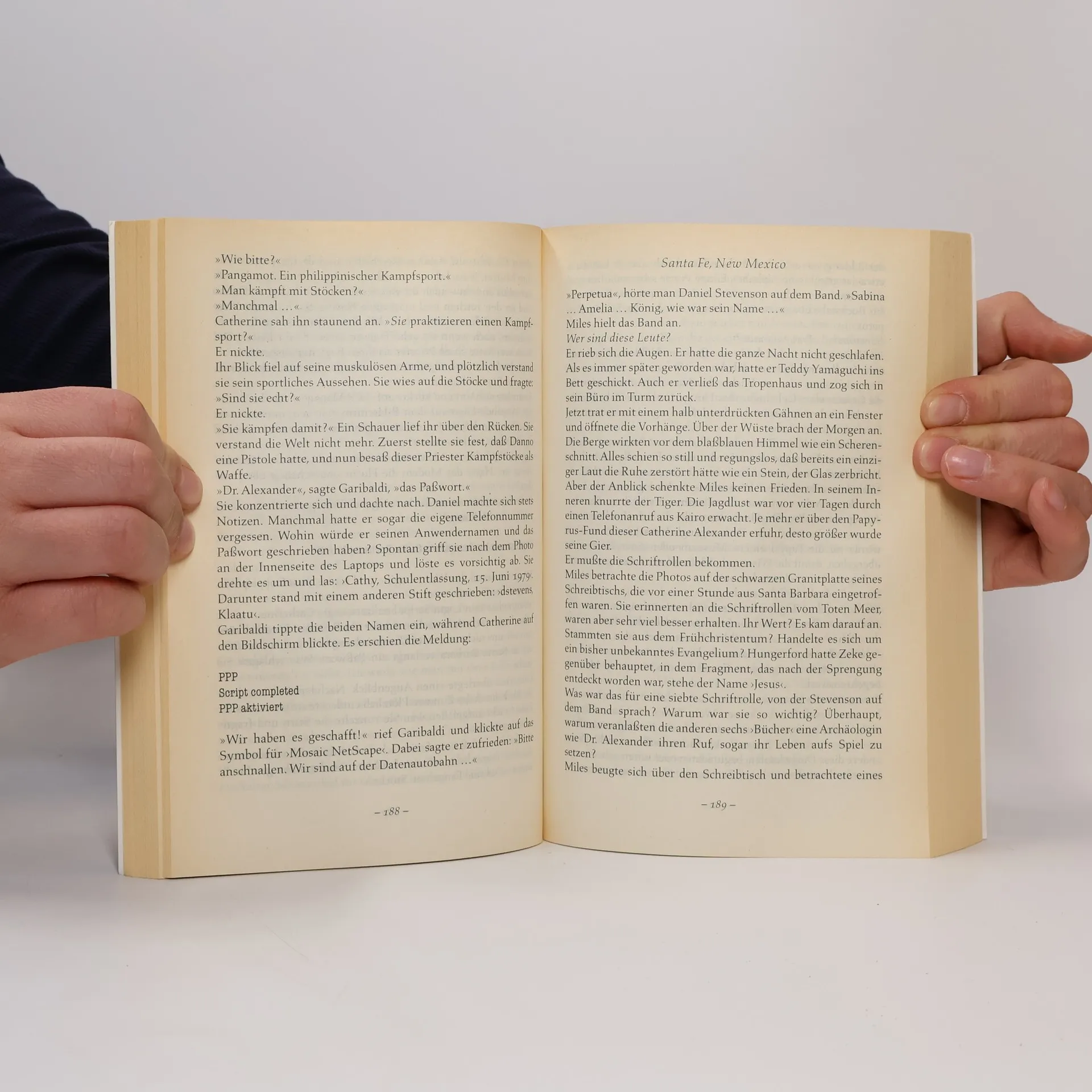 Im Jahre 1999 entdeckt die junge Archäologin Catherine Alexander am Golf von Akkaba Schriftrollen aus der Zeit des frühen Christentums. In Amerika werden die Texte entziffert und übersetzt. Der Inhalt ist hochbrisant: Sabina, eine Zeugin der ersten Gründungen von Glaubensgemeinschaften der Urchristen erzählt darin von einer ausgeprägt weiblichen Führung der frühen Kirche. Es dauert nicht lange, bis die Jagd auf Catherine - und auf die Schriftrollen - einsetzt: Der Vatikan hat Anlaß, um die Stellung des Papstes und die ausschließlich männliche Priesterschaft zu fürchten, und es gibt skrupellose Sammler von antiken Raritäten, die in ihrer Besitzgier auch vor Mord nicht zurückschrecken. Inzwischen steigt am Ende des Milleniums das „Jahrtausendfieber“. Die Presse hat Auszüge aus den Schriftrollen erhalten und publiziert. Alle stürzen sich auf die Aussagen des „Gerechten“ und seine Prophezeiungen vom Ewigen Leben und der Wiederkunft Christi. Aber der Schlüssel zum Verständnis, die letzte Schriftrolle, fehlt. Und während Catherine eine große menschliche Enttäuschung verkraften muß, macht sie, die Gejagte, ihrerseits fieberhaft Jagd auf die letzte Rolle mit Sabinas Bericht.
