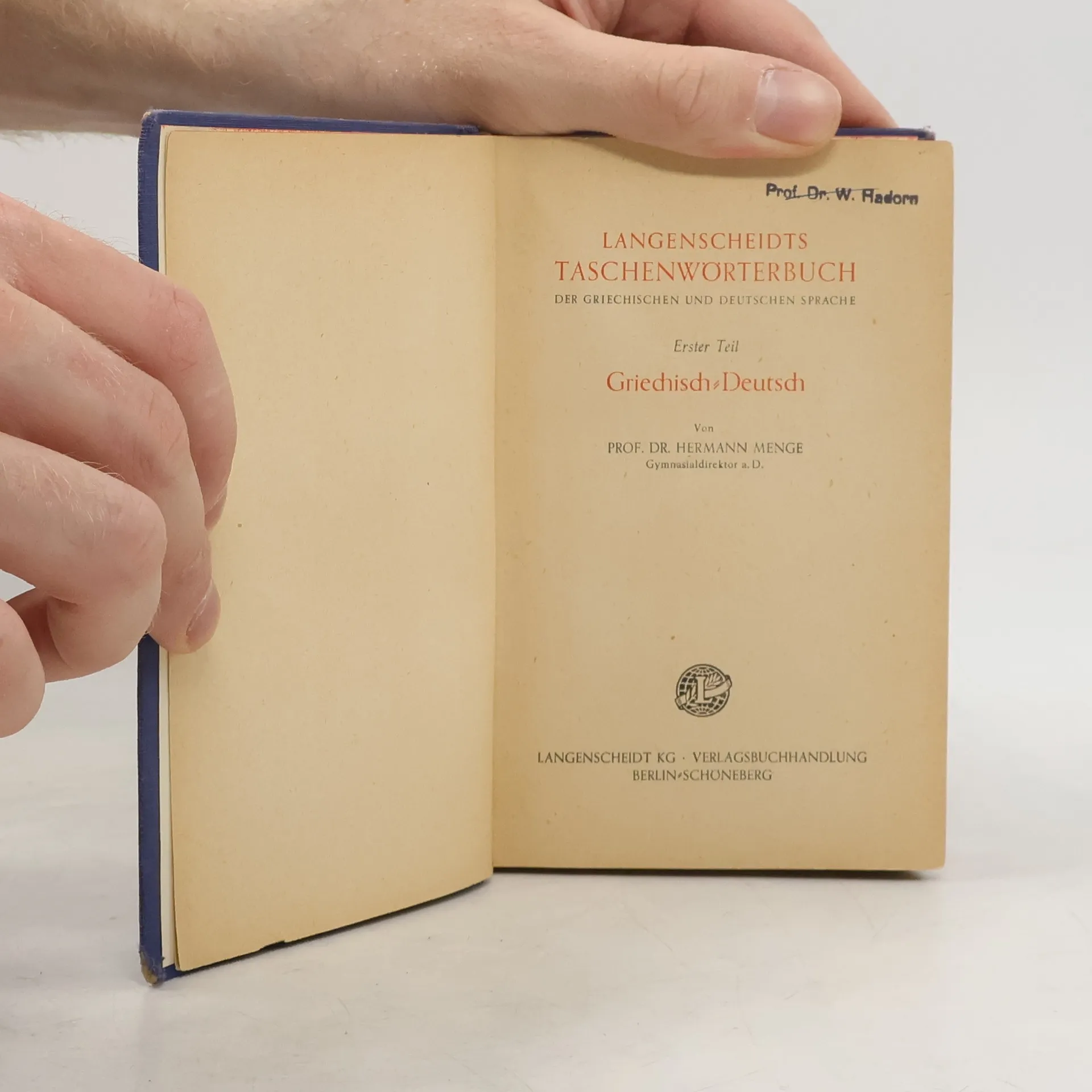 Langenscheidts Taschenwörterbuch der griechischen und deutschen Sprache. Erster Teil. Griechisch-Deutsch, Hermann Menge