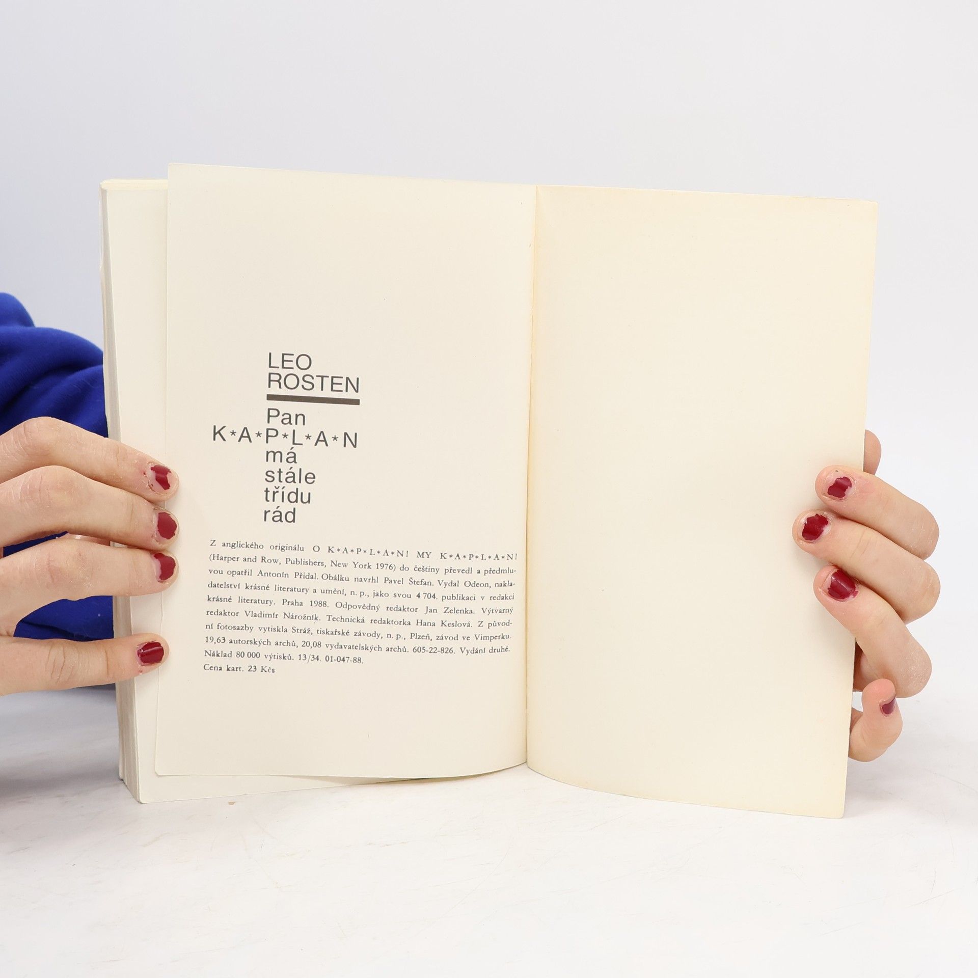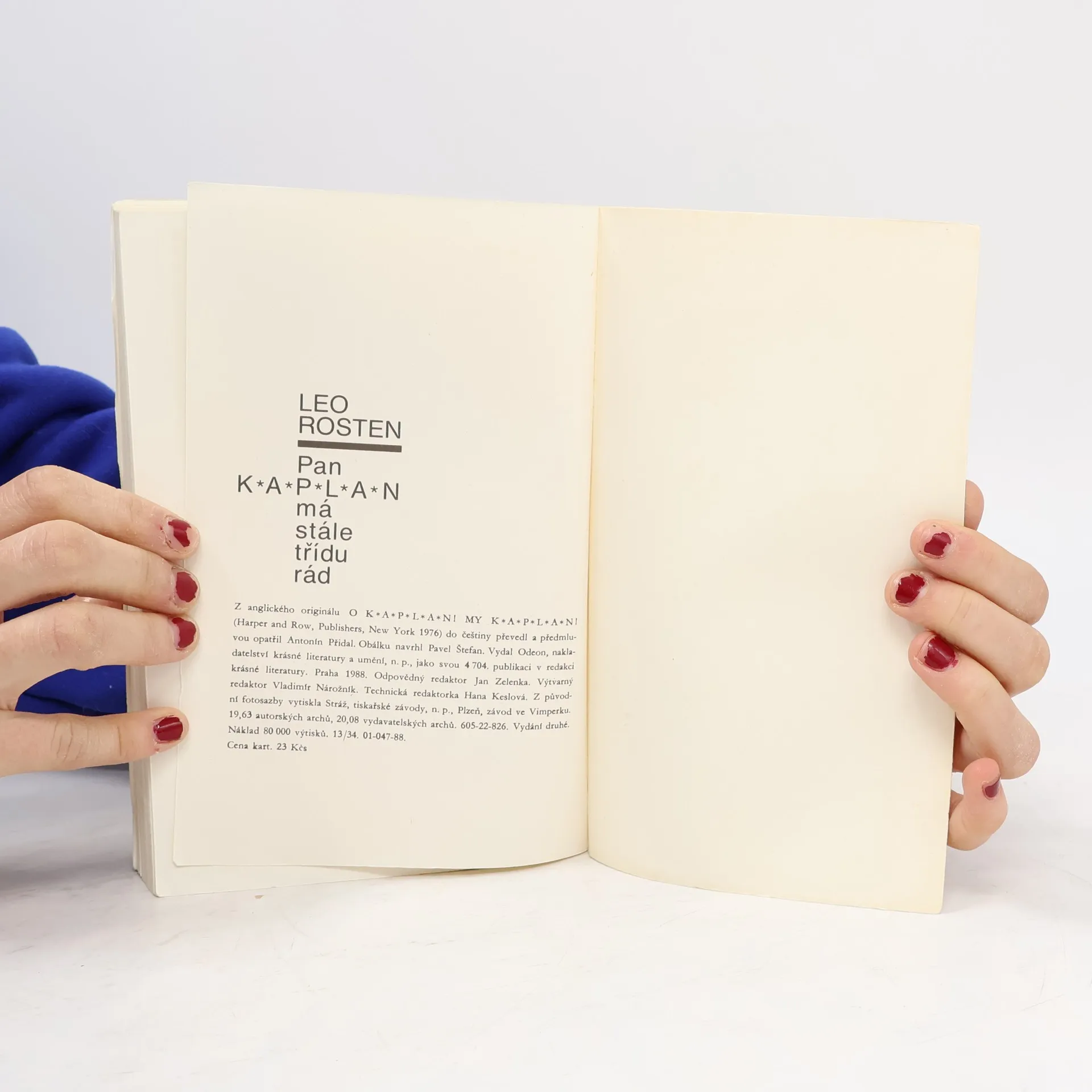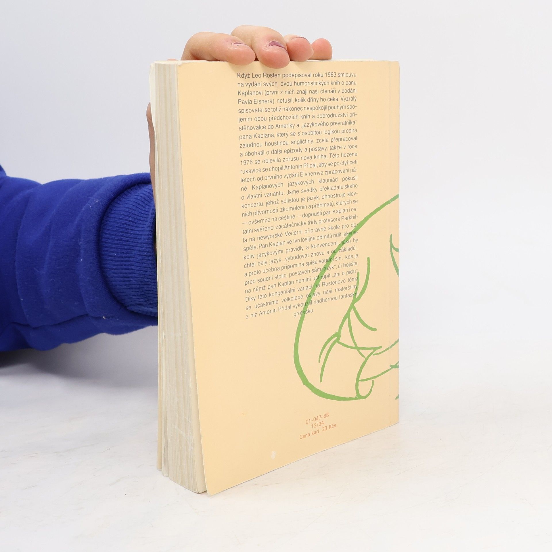 Když Leo Rosten podepisoval roku 1963 smlouvu na vydání svých dvou humoristických knih o panu Kaplanovi (první z nich znají naši čtenáři v podání Pavla Eisnera), netušil, kolik dřiny ho čeká. Vyzrálý spisovatel se totiž nakonec nespokojil pouhým spojením obou předchozích knih a dobrodružství přistěhovalce do Ameriky a „jazykového převratníka“ pana Kaplana, který se s osobitou logikou prodírá záludnou houštinou angličtiny, zcela přepracoval a obohatil o další epizody a postavy, takže v roce 1976 se objevila zbrusu nová kniha. Této hozené rukavice se chopil Antonín Přidal, aby se po čtyřiceti letech od prvního vydání Eisnerova zpracování páně Kaplanových jazykových klauniád pokusil o vlastní variantu. Jsme svědky překladatelského koncertu, jehož sólistou je jazyk, ohňostroje slovních pitvorností, zkomolenin a přehmatů, kterých se — ovšemže na češtině — dopouští pan Kaplan i ostatní svěřenci začátečnické třídy profesora Parkhilla na newyorské Večerní přípravné škole pro dospělé. Pan Kaplan se tvrdošíjně odmítá řídit jakýmikoliv jazykovými pravidly a konvencemi, jako by chtěl celý jazyk „vybudovat znovu a od základů'', a proto učebna připomíná spíše soudní síň, „kde je před soudní stolici postaven sám jazyk“, či bojiště, na němž pan Kaplan nemíní ustoupit „ani o píďu“. Díky této kongeniální variaci na Rostenovo téma se účastníme velkolepé oslavy naší mateřštiny, z níž Antonín Přidal vykouzlil nádhernou fantaskní grotesku.