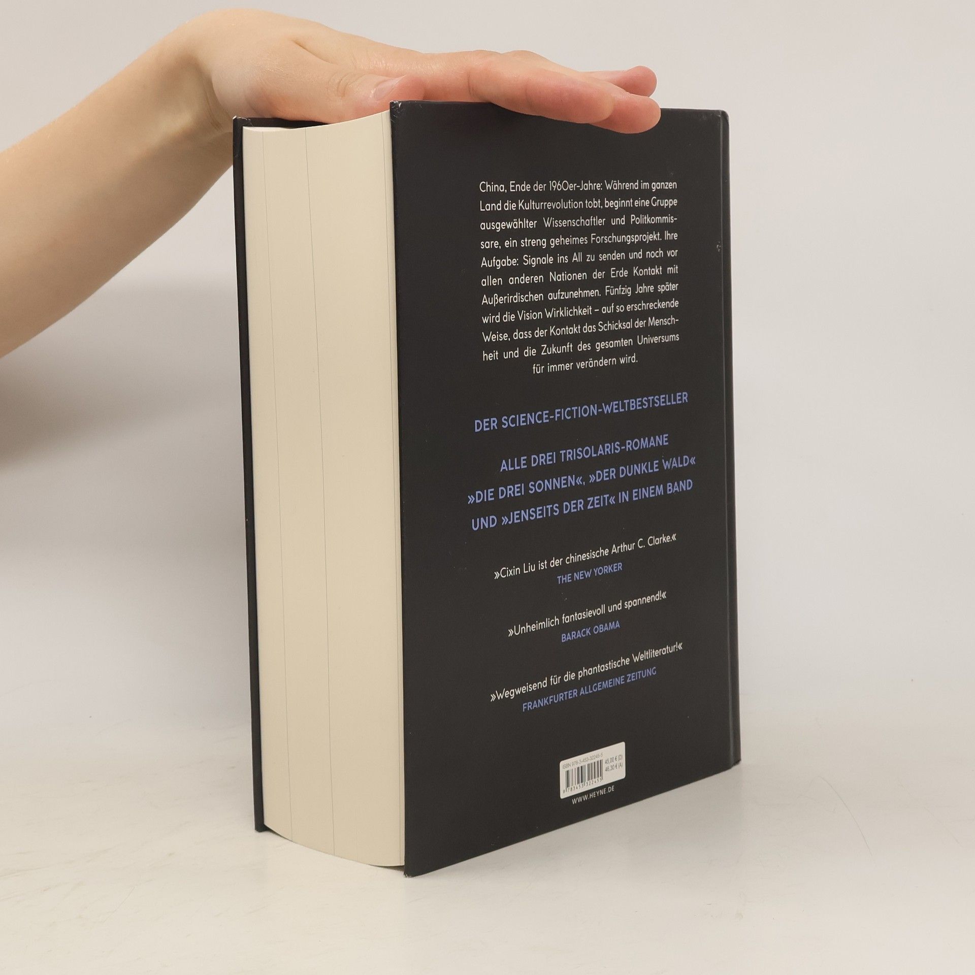 Die Science-Fiction-Sensation aus China – alle drei Trisolaris-Romane in einem Band China, Ende der 1960er-Jahre: Während im ganzen Land die Kulturrevolution tobt, beginnt eine kleine Gruppe von Astrophysikern, Politkommissaren und Ingenieuren ein streng geheimes Forschungsprojekt. Ihre Aufgabe: Signale ins All zu senden und noch vor allen anderen Nationen Kontakt mit Außerirdischen aufzunehmen. Fünfzig Jahre später wird diese Vision Wirklichkeit – auf eine so erschreckende, umwälzende und globale Weise, dass dieser Kontakt das Schicksal der Menschheit für immer verändern wird. Mit seinen Trisolaris-Romanen »Die drei Sonnen«, »Der dunkle Wald« und »Jenseits der Zeit« hat sich Cixin Liu als einer der kühnsten Denker in die internationale Literaturgeschichte eingeschrieben. Seine Romane haben weltweit Millionen Leserinnen und Leser begeistert – jetzt sind sie erstmals in einem Band versammelt.