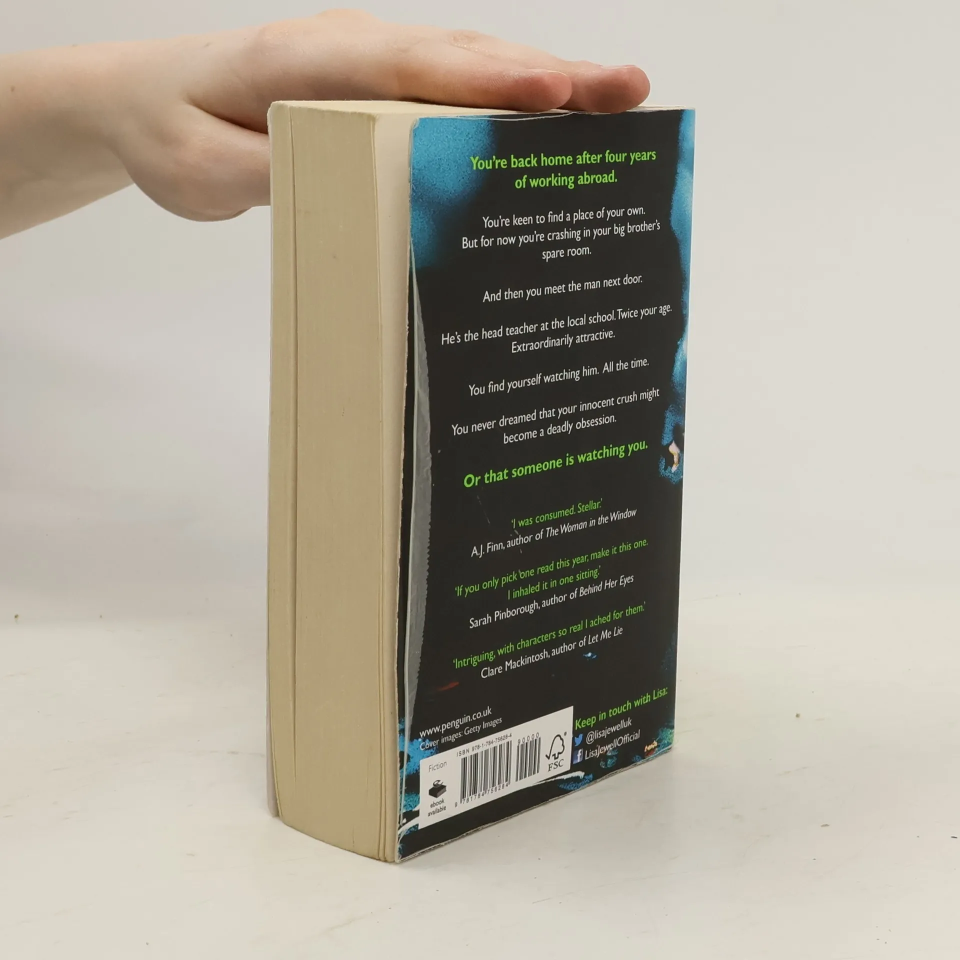 You're back home after four years working abroad, new husband in tow. You're keen to find a place of your own. But for now you're crashing in your big brother's spare room. That's when you meet the man next door. He's the head teacher at the local school. Twice your age. Extraordinarily attractive. You find yourself watching him. All the time. But you never dreamed that your innocent crush might become a deadly obsession. Or that someone is watching you.