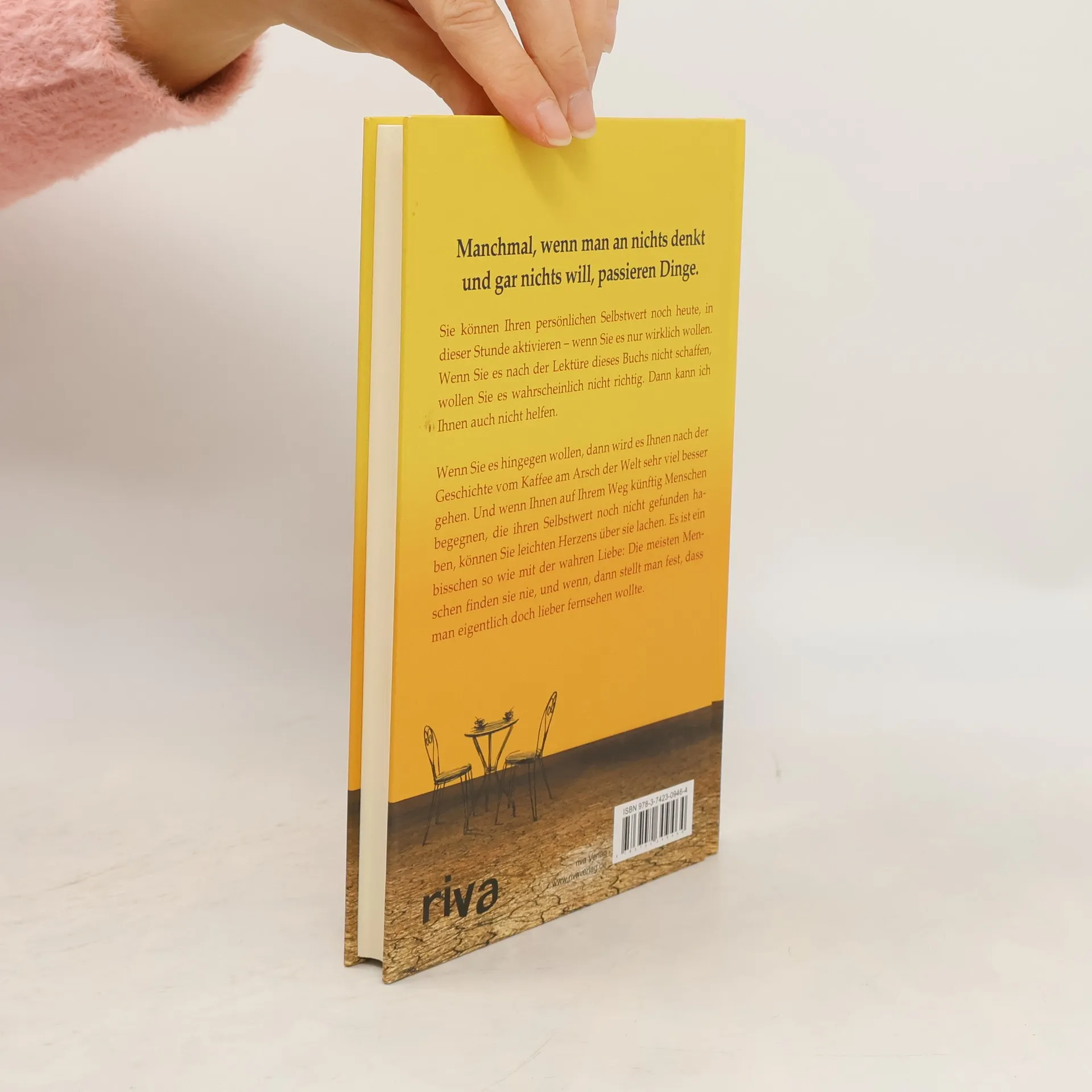 Manchmal, wenn man an nichts denkt und gar nichts will, passieren Dinge. Sie können Ihren persönlichen Selbstwert noch heute, in dieser Stunde aktivieren – wenn Sie es nur wirklich wollen. Wenn Sie es nach der Lektüre dieses Buchs nicht schaffen, wollen Sie es wahrscheinlich nicht richtig. Dann kann ich Ihnen auch nicht helfen. Wenn Sie es hingegen wollen, dann wird es Ihnen nach der Geschichte vom Kaffee am Arsch der Welt sehr viel besser gehen. Und wenn Ihnen auf Ihrem Weg künftig Menschen begegnen, die ihren Selbstwert noch nicht gefunden haben, können Sie leichten Herzens über sie lachen. Es ist ein bisschen so wie mit der wahren Liebe: Die meisten Menschen finden sie nie, und wenn, dann stellt man fest, dass man eigentlich doch lieber fernsehen wollte.