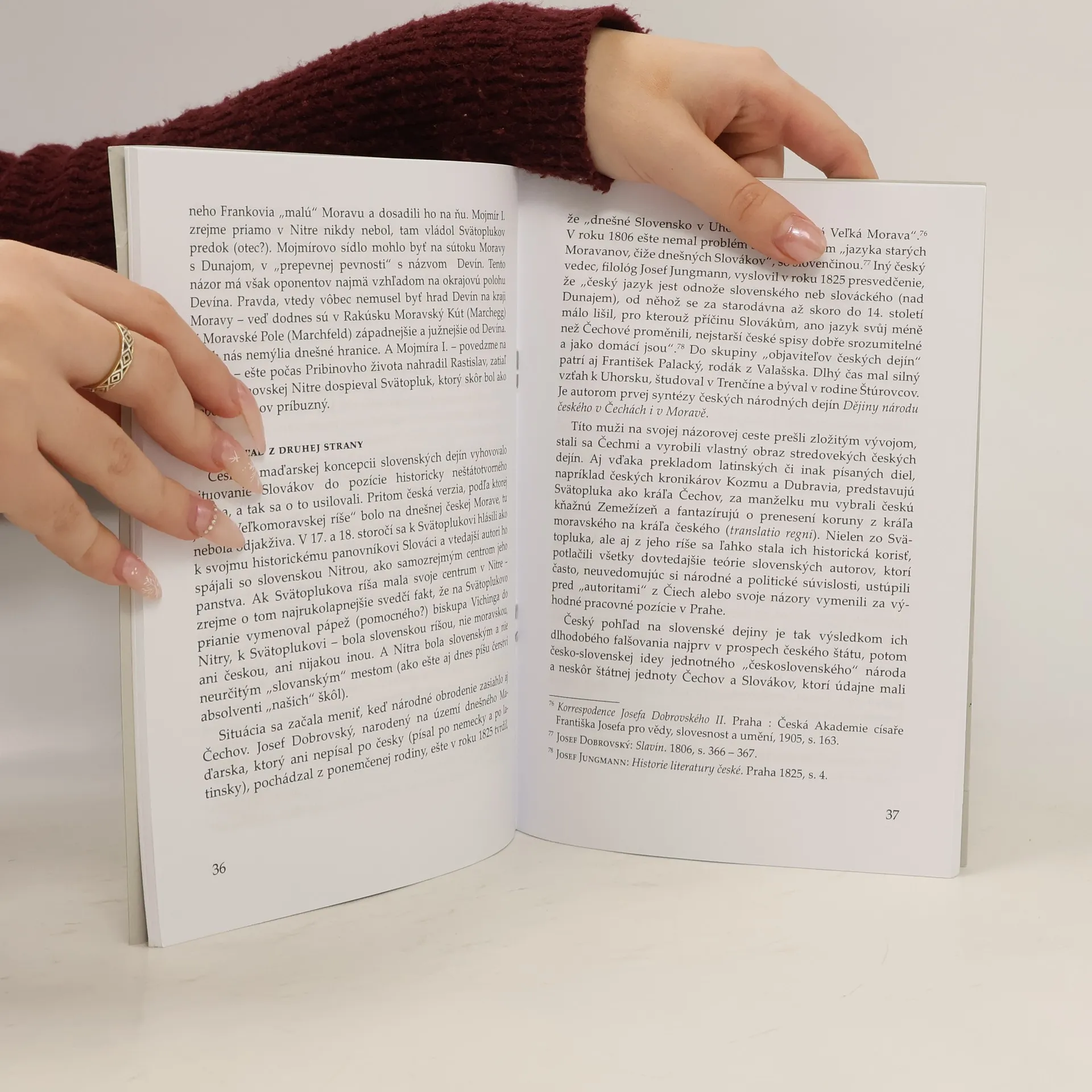 Autor Marián Tkáč vo svojom spise skúma historické postavenie Nitry a jej význam pre slovenský národ. Považuje ju za trvalé centrum slovenského duchovného, hospodárskeho a politického života. Uvádza, že nám chýba vlastná, nespochybniteľná niť dejín, a Nitra by mohla byť týmto pevným bodom. Kritizuje anachronizmus „Veľká Morava“, ktorý sa stal mýtom a je považovaný za exonymum, ktoré sme bez kritiky prevzali. Tkáč upozorňuje, že táto nomenklatúra skresľuje naše dejiny a žiada o jej nahradenie presnejšími názvami, bližšími pravde. Zmienka o Moravskom princovi Rostislavovi a jeho žiadosti o misionárov je len jedným z aspektov, ktoré ilustrujú, ako sa dejiny interpretujú. Tkáč sa pýta, či máme odvahu prepísať a zrekonštruovať naše dejiny a kriticky hodnotiť názory slovenských prvohistorikov. Argumentuje, že radikálny obrat vo výklade dejín je nevyhnutný, ak sa chceme oslobodiť od českého pohľadu. Navrhuje, aby sme prehodnotili terminológiu a pomenovali historické reálie vlastnými názvami, ako napríklad Nitrava a Veľká Nitrava. Tkáč zdôrazňuje potrebu poriadku v terminológii ako základ pre vlastný výklad dejín.