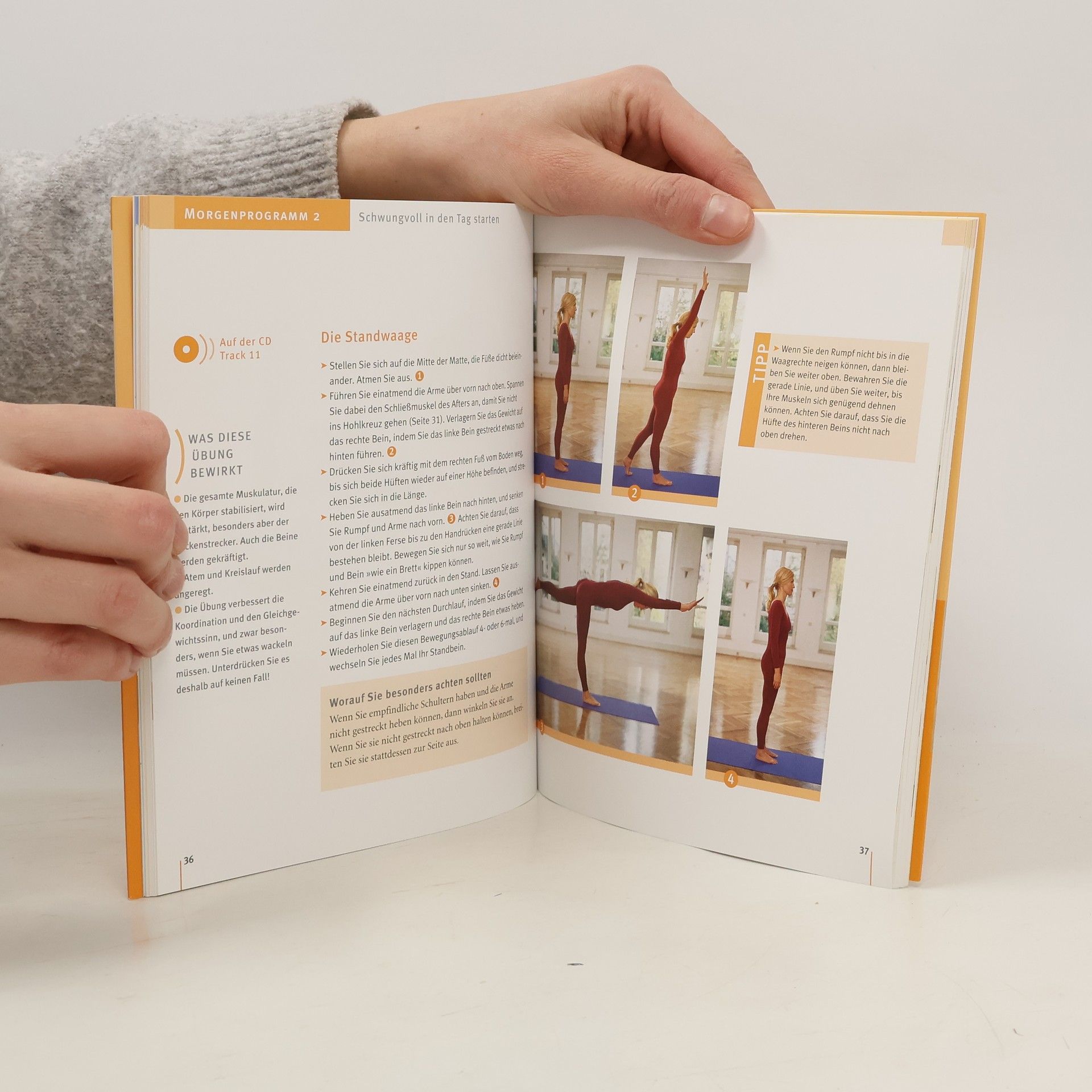 Alleine Yoga üben ist oft mühsam und fordert viel Disziplin. Es bietet verschiedene Übungsprogramme für den Morgen und den Abend sowie eine Entspannungs- und eine Meditationsübung. Außerdem finden sich im Buch weitere Übungsvariationen.