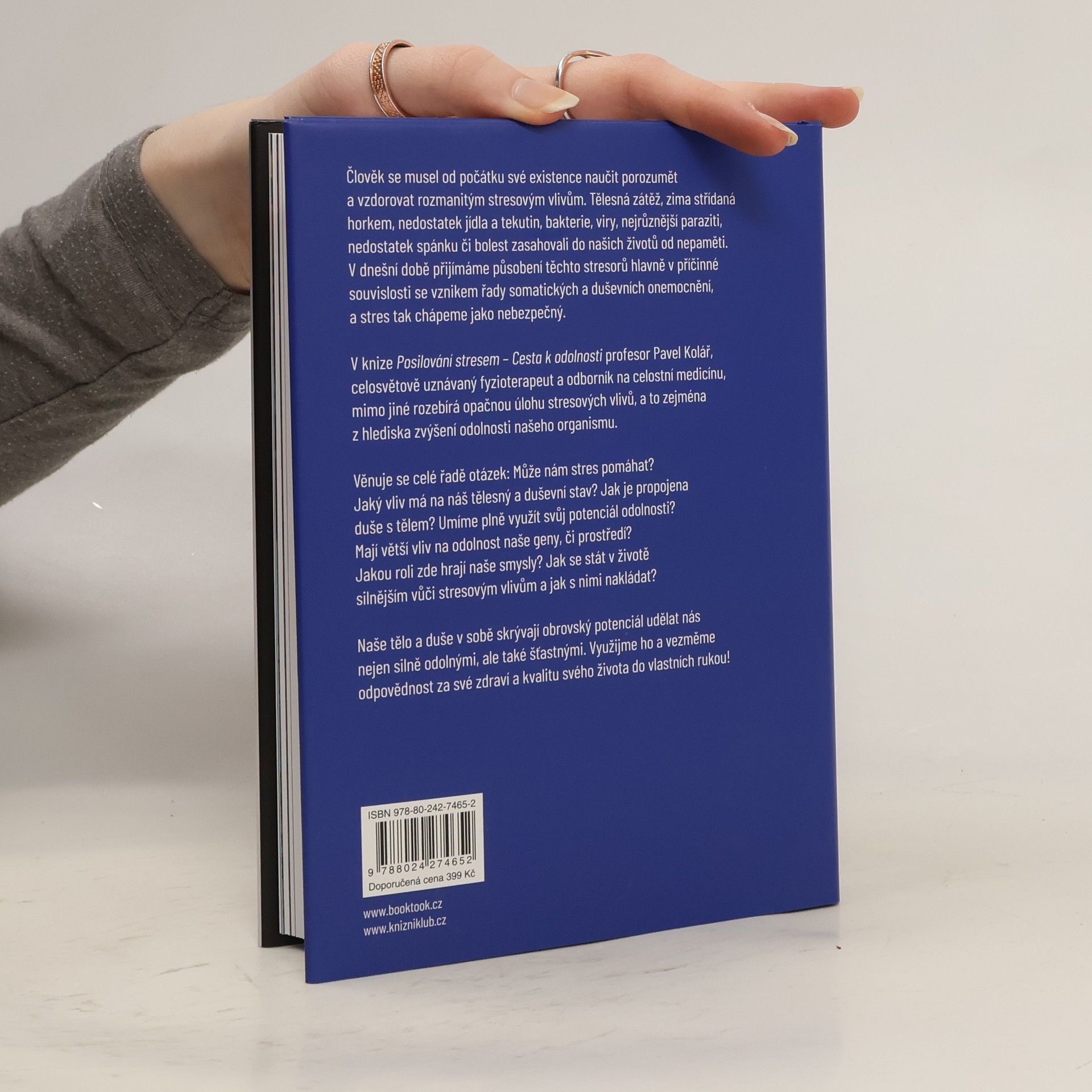 O stresu se hovoří zejména jako o umělé, lidstvem vyrobené zátěži. Člověk se musel naučit porozumět a vzdorovat rozmanitým stresovým vlivům od počátku své existence. Tělesná zátěž, zima střídaná horkem, nedostatek jídla a tekutin, bakterie, viry, nedostatek spánku či bolest zasahovaly do našich životů od nepaměti. V dnešní době vnímáme stres především jako významnou příčinu vzniku řady tělesných a duševních onemocnění, a chápeme jej jako nebezpečný. Pavel Kolář, celosvětově uznávaný fyzioterapeut a odborník na celostní medicínu, ve své knize Posilování stresem – Cesta k odolnosti mimo jiné rozebírá opačnou úlohu stresových vlivů, a to zejména z hlediska zvýšení odolnosti našeho organismu. Naše tělo a duše v sobě skrývá obrovský potenciál udělat nás nejen silně odolnými, ale také šťastnými. Využijme ho a vezměme odpovědnost za své zdraví a kvalitu svého života do vlastních rukou!