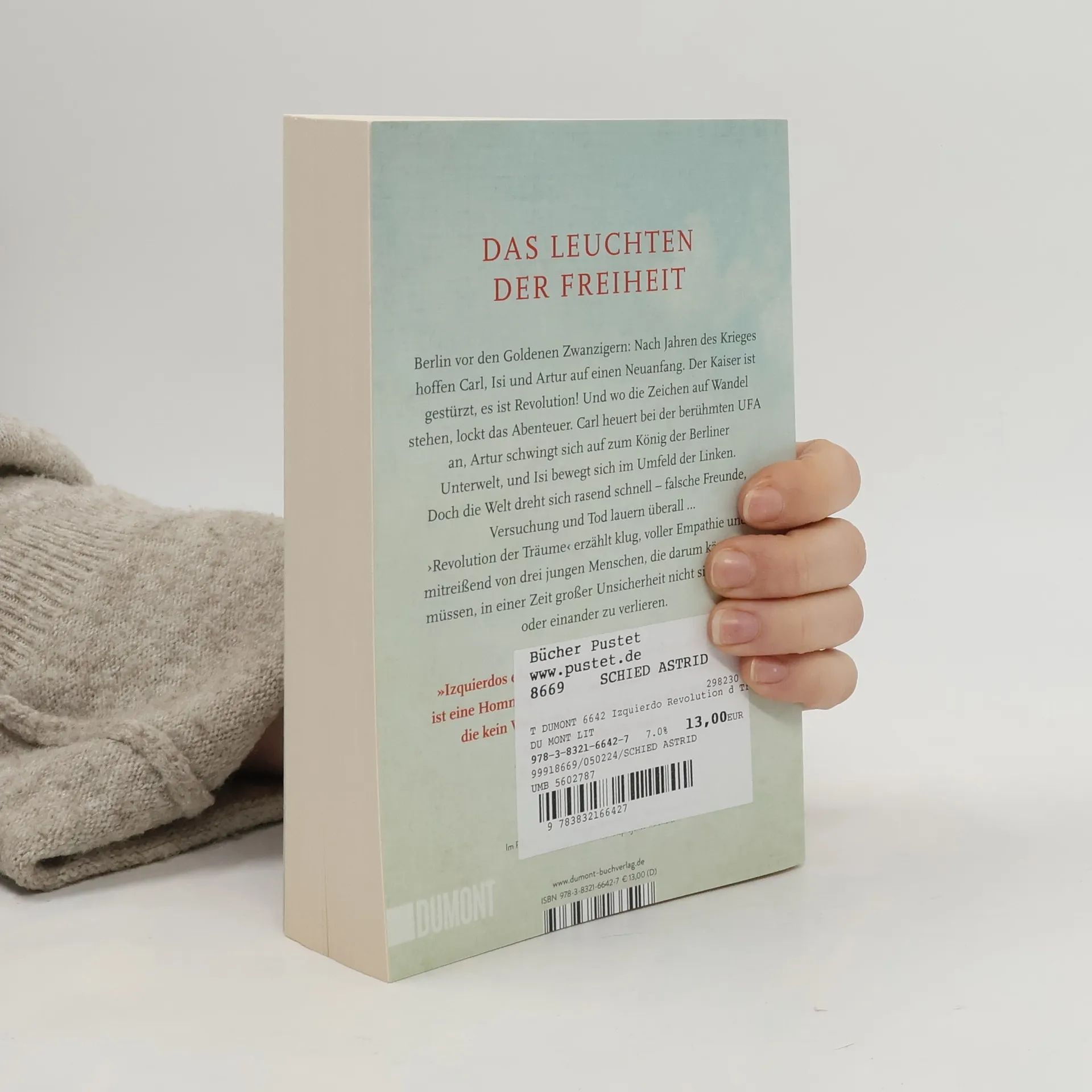 Berlin, Ende 1918: Die drei Freunde Carl, Isi und Artur haben sich bis in die Hauptstadt durchgeschlagen und erleben die Zeit des Umbruchs alle auf ihre Weise. Der Kaiser ist gestürzt – Träume von Freiheit liegen in der Luft. Carl beobachtet das Treiben der Aufständischen mit Sympathie, aber auch mit Sorge. Eigentlich will er nur noch eins: echten Frieden. Und Kameramann sein, bei der berühmten UFA! Artur hat sich derweil in kürzester Zeit zum König der Berliner Unterwelt hochgearbeitet. Doch Erfolg lockt Neider an – und Neider bedeuten Gefahr. Isi wiederum sucht im politischen Kampf die Herausforderung und freundet sich mit Leuten aus dem linken Umfeld an. Als sie allerdings den Adelssprössling Aldo von Torstayn kennenlernt, geraten ihre Prinzipien ins Wanken ... In ›Revolution der Träume‹ zeigt Andreas Izquierdo die Abgründe der jungen Weimarer Republik. Kenntnisreich und fesselnd erzählt er von drei Freunden, die versuchen, in einer Welt im Wandel zu bestehen: ein spannender historischer Roman für Herz und Kopf.