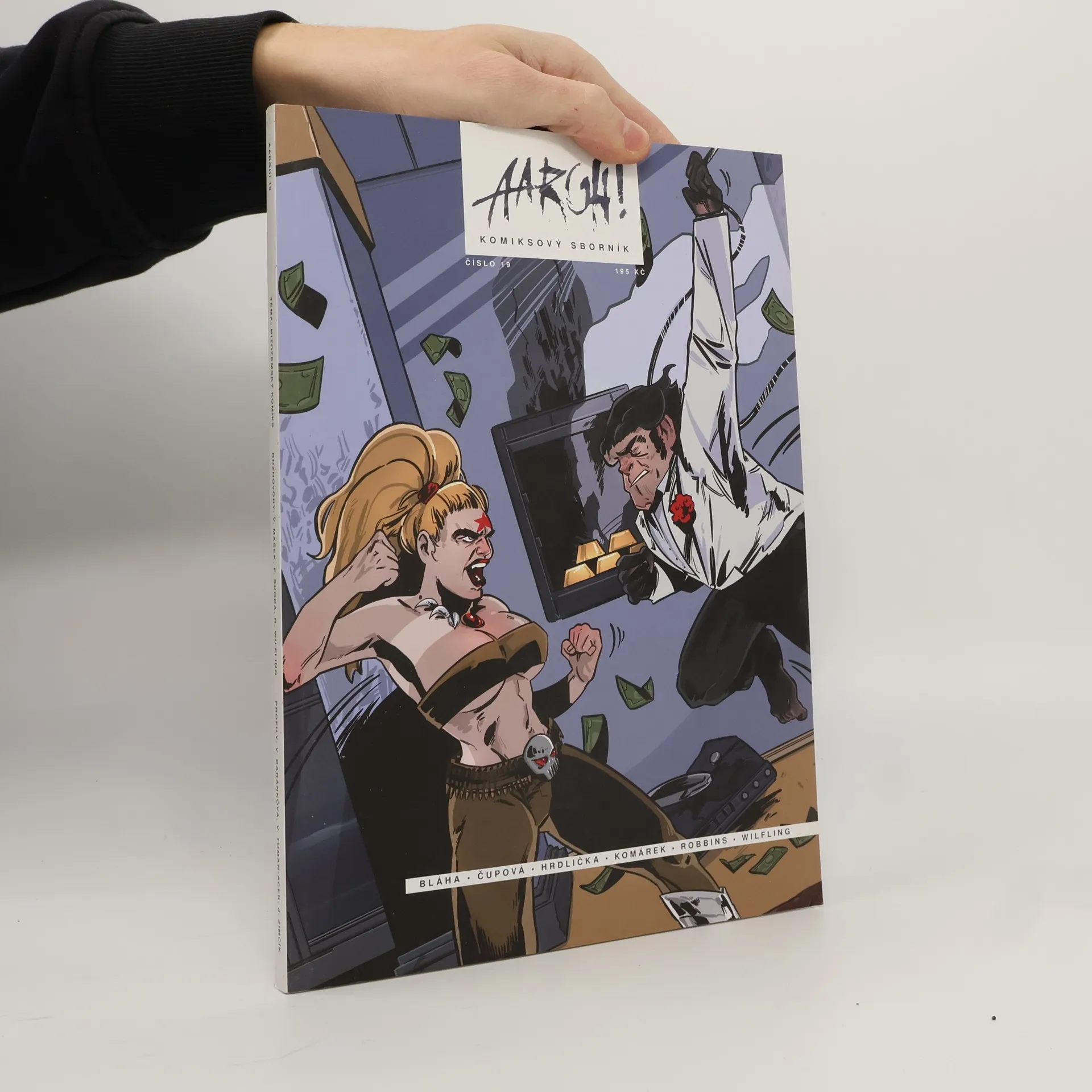 AARGH!u 19 dominují dva dlouhé příběhy – zatímco práce Kateřiny Čupové Pařez vypráví o magickém setkání ve zdánlivě obyčejném lese, komiks bratří Bláhových ADHD přibližuje, co se stane, když se podprůměrná metalová kapela musí utkat s nadprůměrně velkými démony jednoho ze svých členů. Ve sborníku má navíc světovou premiéru příběh Octobriana: Kerenského kód, který pro českou kreslířku Renatu Wilfling napsala americká legenda Trina Robbins. Kromě řady dalších domácích prací pak AARGH! představuje současnou nizozemskou scénu a odhaluje identitu autorky legendárního planetárika Tutiho, nejtajemnějšího hrdiny slovenského komiksu.