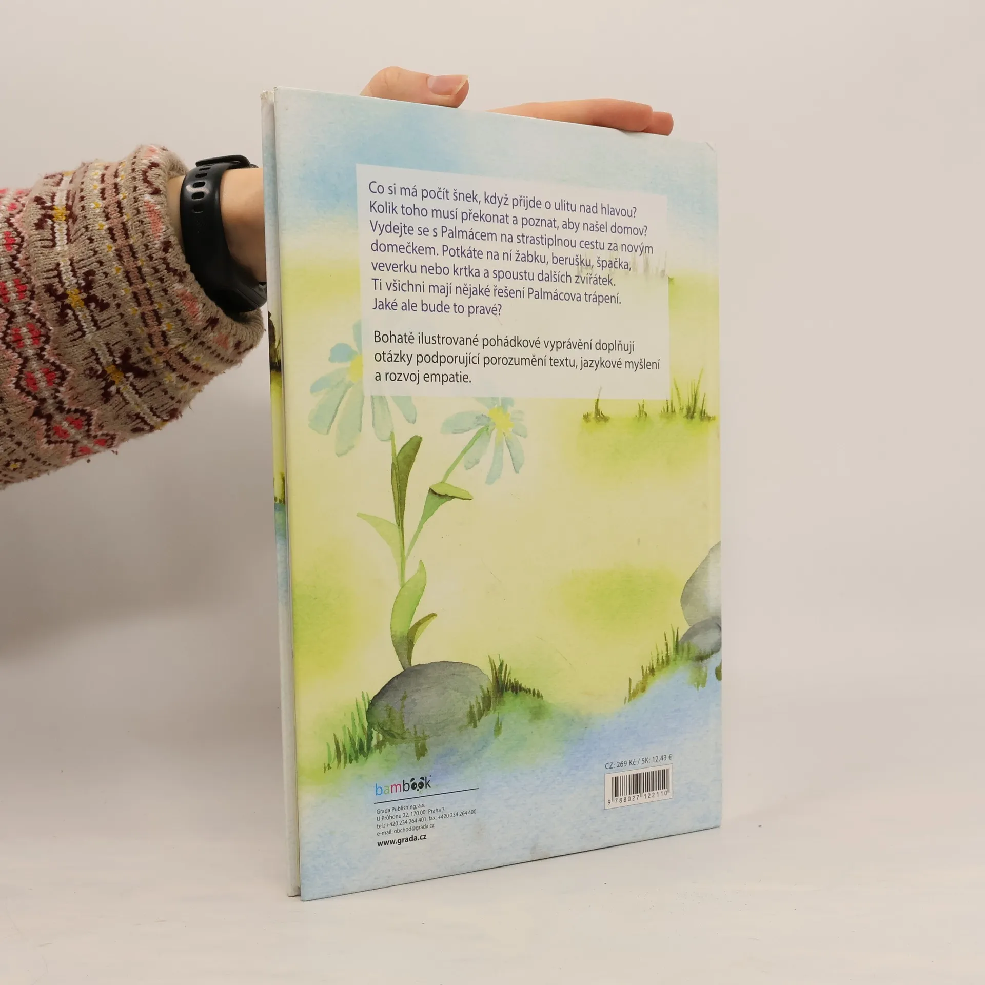 Kolik toho musí takový šnek překonat a poznat, aby našel domov!? Vydejte se s Palmácem na dlouhou cestu za novým domečkem. Potkáte na ní žabku, berušku, špačka, veverku nebo krtka a mnoho dalších zvířátek. Ti všichni mají nějaké řešení Palmácova trápení. Jaké ale bude to pravé? Ve velkoformátové barevné knize se potkává příběh úspěšné autorky Zuzany Pospíšilové s podmanivými ilustracemi debutující Lucie Velíškové. Bohatě ilustrované pohádkové vyprávění doplňují otázky podporující porozumění textu, jazykové myšlení a rozvoj empatie a emoční inteligence.