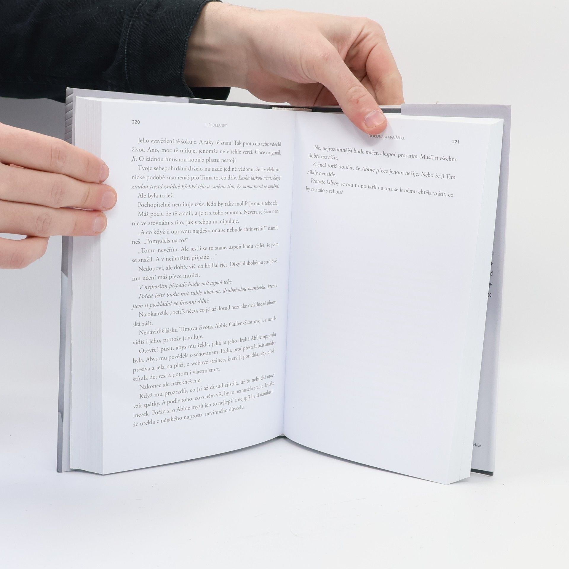 Dokonalý život. Dokonalá láska. Dokonalá lež. Nový thriller autora bestsellerů Ta přede mnou a Věř mi, který neodložíte, dokud ho nedočtete. Když se vzbudí, bolí ji každičký kousek jejího těla a nepamatuje si, kdo je, kde se nachází ani jak se tam ocitla, a tak ji hned napadne, že je v nemocnici – že měla těžkou nehodu. Muž sedící vedle její postele tvrdí, že je její muž. Ona se prý jmenuje Abbie, je nadaná umělkyně, vášnivá surfařka, milující matka a dokonalá manželka. A také jí tvrdí, že měla před pěti lety děsivou nehodu a jen díky tomu, že je Tim vizionář a obrovskému technologickému průlomu byla přivedena zpět z propasti. Abbie je zázrakem vědy. Ovšem když se Abbie začnou vybavovat střípky vzpomínek, zjišťuje, že její předchozí život asi nebyl tak úžasný, jak jí Tim tvrdí. Může mu věřit? A co se vlastně před pěti lety stalo?