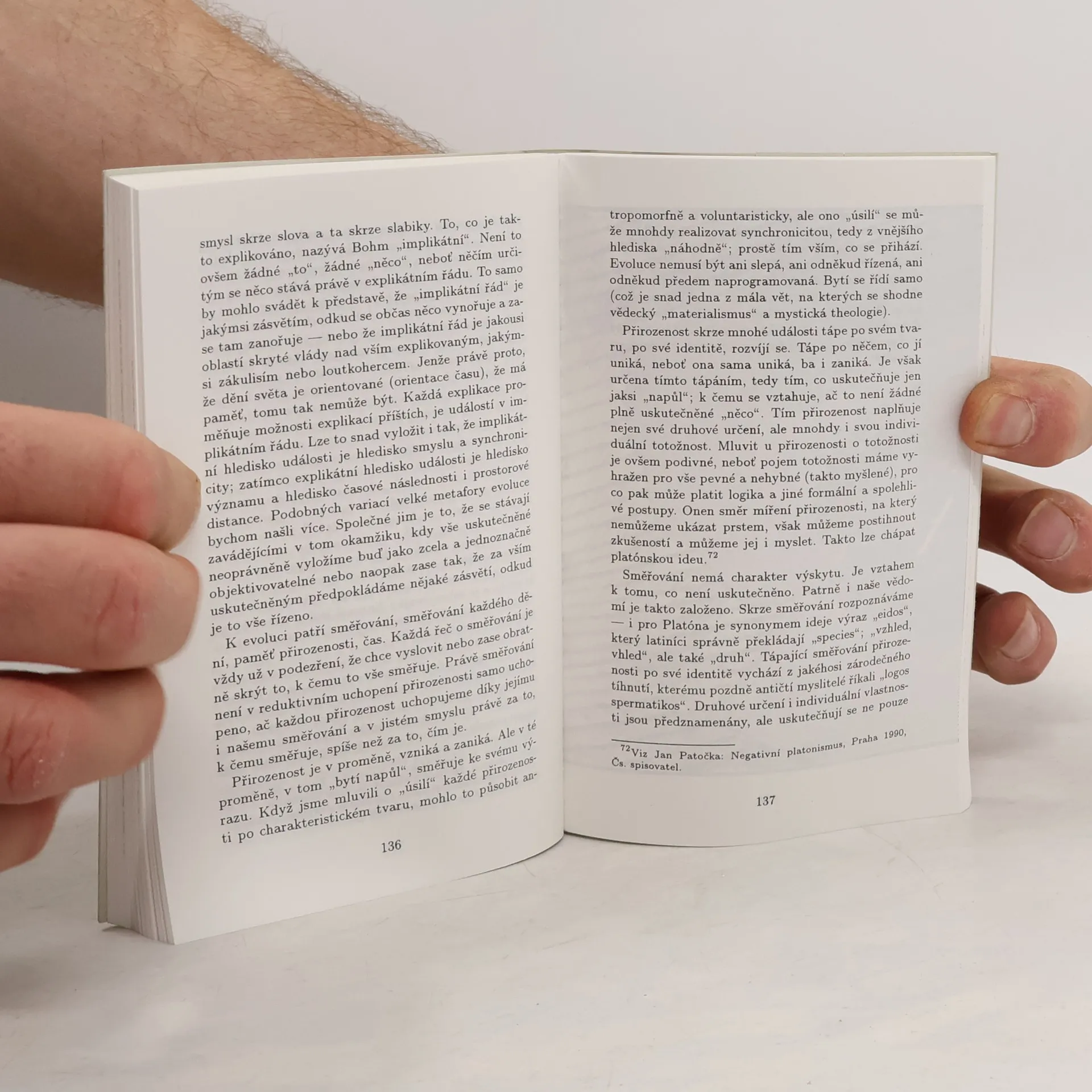 Z. Kratochvíl svůj text označuje jako „pokus o sestup na nejistou a bohatou půdu zkušenosti přírody – na půdu přirozené zkušenosti“. V úvodu autor podává etymologický výklad pojmu příroda, respektive přirozenost, a zabývá se jejími jednotlivými aspekty (co vše k celku přirozenosti patří, jakým způsobem ji uchopujeme…). Z. Kratochvíl upozorňuje, že zasutí smyslu pro přirozenost se projevuje poškozením světa – proto je nutné zabývat se světem a jeho pluralitou – jako pozadím jevů a kontextem věcí, jako sounáležitostí horizontů, jako paradigmatem uchopování přirozeností. Avšak existuje i svět přirozený, ne jen jako problém filosofický, ale také jako problém životní. Kratochvíl dále podává výklad kategorií, pomocí kterých svět vnímáme: hmoty, prostoru a času. Další kapitoly Kratochvíl věnuje živé přírodě (ptá se po identitě živého organismu, vztahu života a bytí), evoluci (pokouší se o „zkušenostní popis evolučního dění, rozebírá Darwina a neodarwinistický evolucionismus) a noetické problematice (poznatelnost živého). Hovoří o paradigmatech skutečnosti, přičemž se zaměřuje na novověké paradigma.
