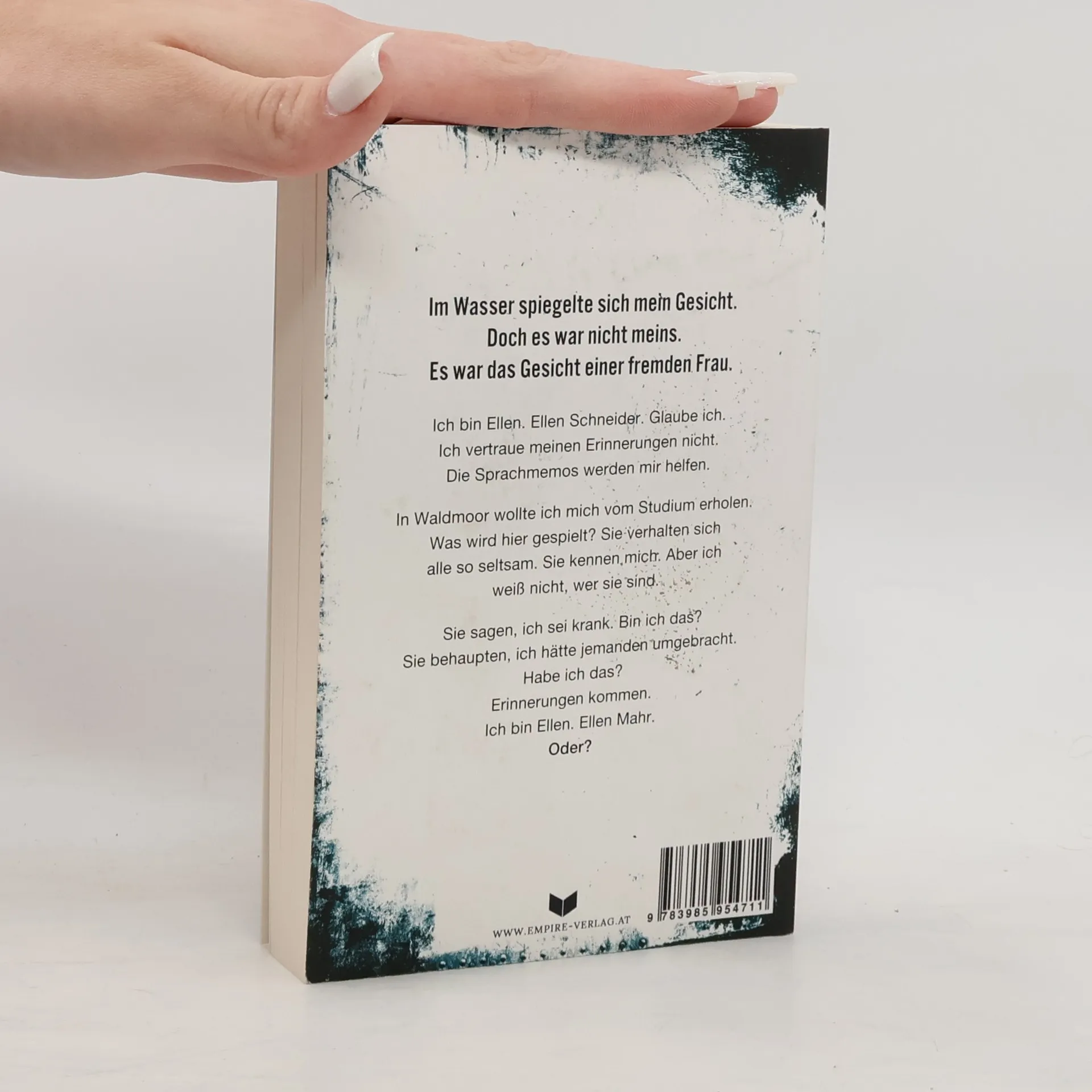 Im Wasser spiegelte sich mein Gesicht. Doch es war nicht meins. Es war das Gesicht einer fremden Frau. Ich bin Ellen. Ellen Schneider. Glaube ich. Ich vertraue meinen Erinnerungen nicht. Die Sprachmemos werden mir helfen. In Waldmoor wollte ich mich vom Studium erholen. Was wird hier gespielt? Sie verhalten sich alle so seltsam. Sie kennen mich. Aber ich weiß nicht, wer sie sind. Sie sagen, ich sei krank. Bin ich das? Sie behaupten, ich hätte jemanden umgebracht. Habe ich das? Erinnerungen kommen. Ich bin Ellen. Ellen Mahr. Oder?